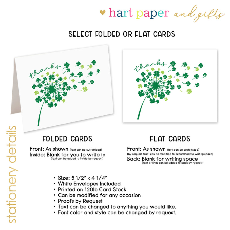 Shamrock Irish Thank You Cards Note Card Personalized Custom Stationery • Flat or Folded
