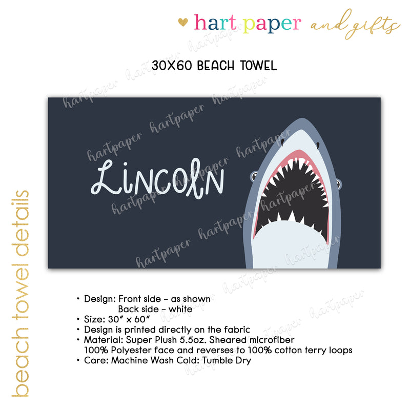 Shark Personalized Beach Towel • Custom 30x60 Swimming Swim Bath Bathroom Pool