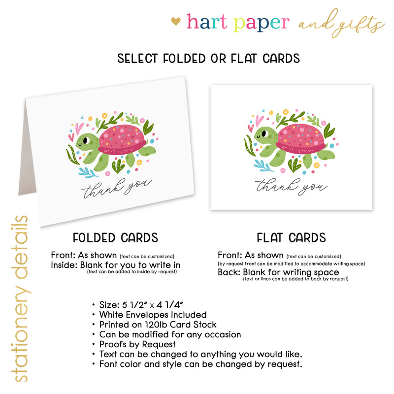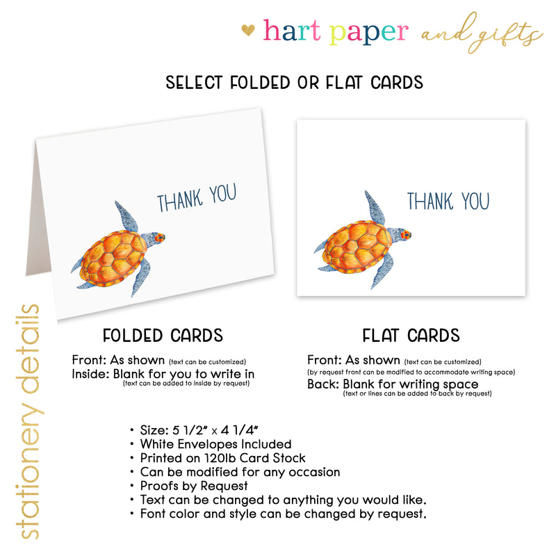 Sea Turtle Thank You Cards Note Card Personalized Custom Stationery • Flat or Folded