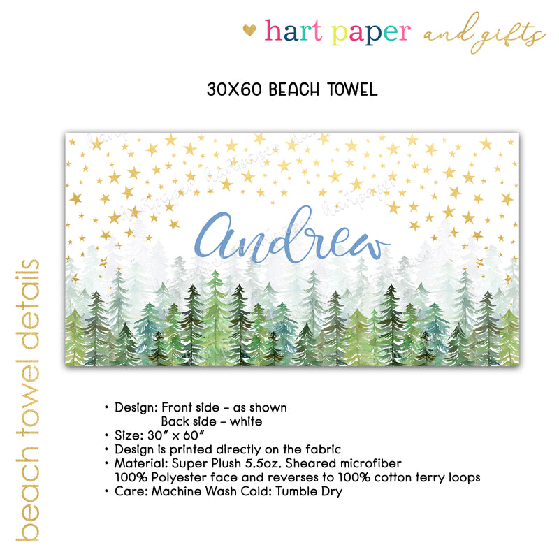 Stars Camping Camp Personalized Beach Towel • Custom 30x60 Swimming Swim Bath Bathroom Pool