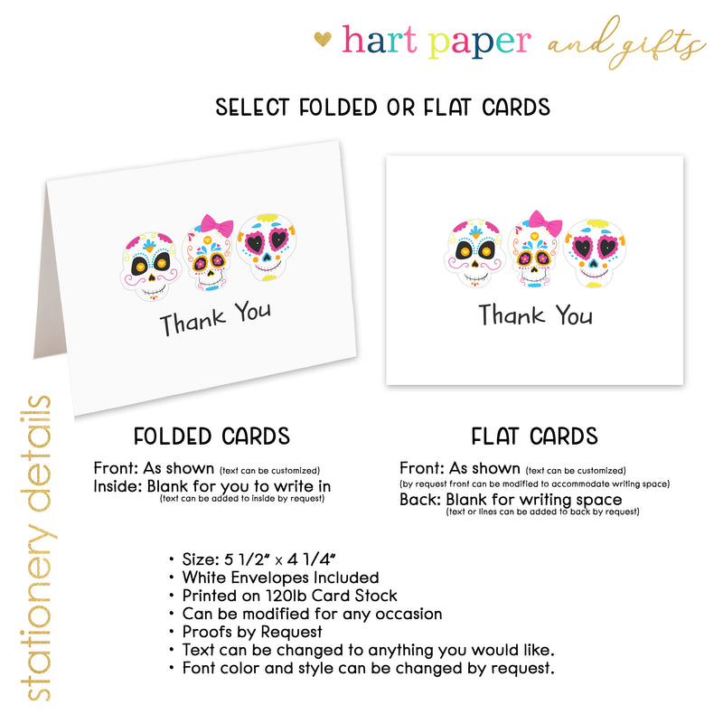 Sugar Skulls Thank You Cards • Folded Flat Card Notecard Stationery