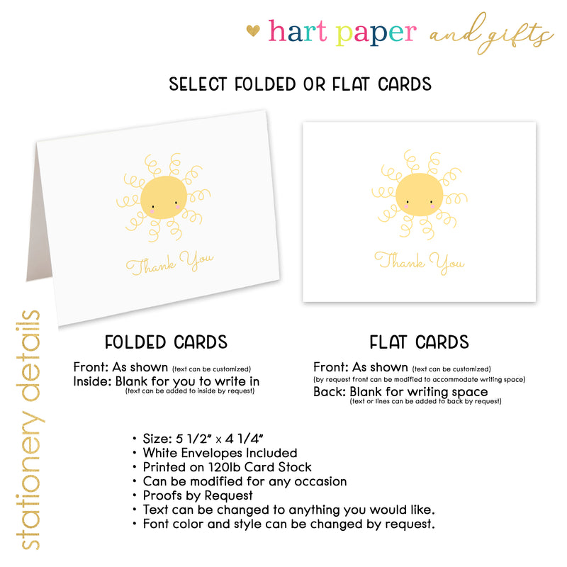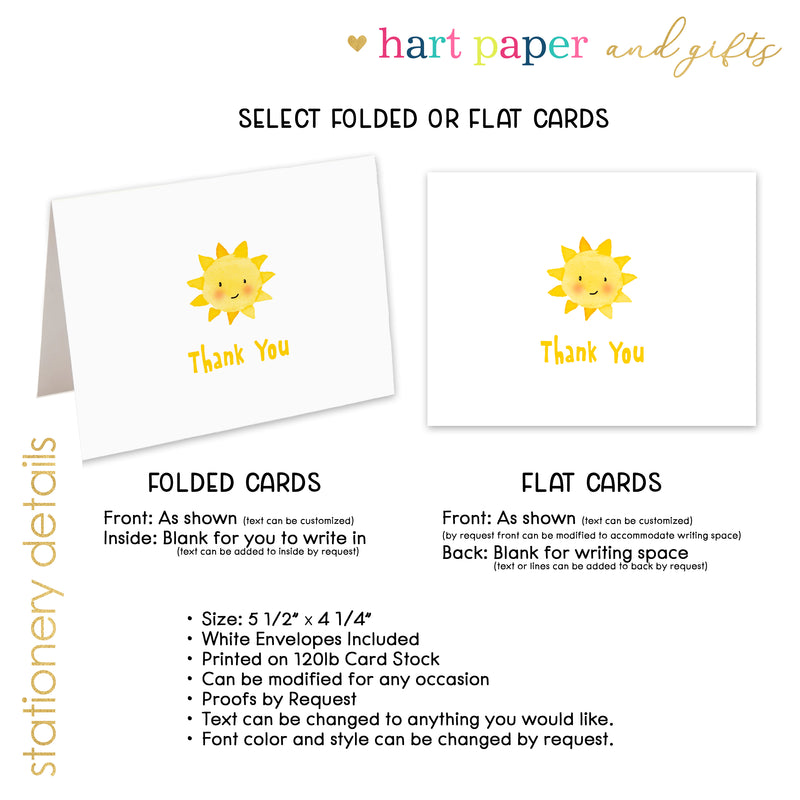 Sunshine Thank You Cards Note Card Personalized Custom Stationery • Flat or Folded