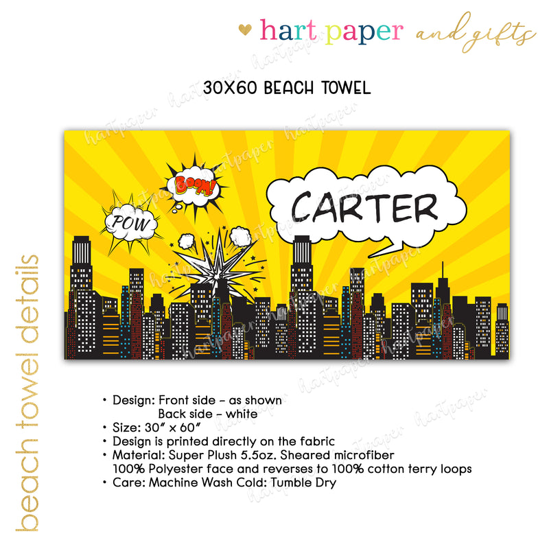 Superhero Personalized Beach Towel • Custom 30x60 Swimming Swim Bath Bathroom Pool