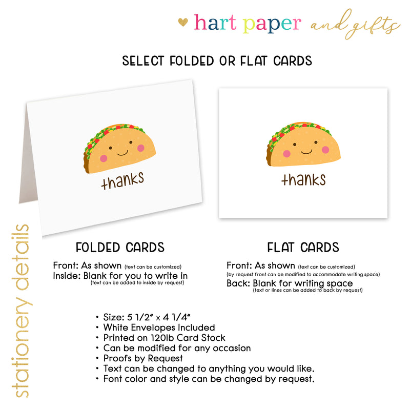 Taco Thank You Cards Note Card Personalized Custom Stationery • Flat or Folded
