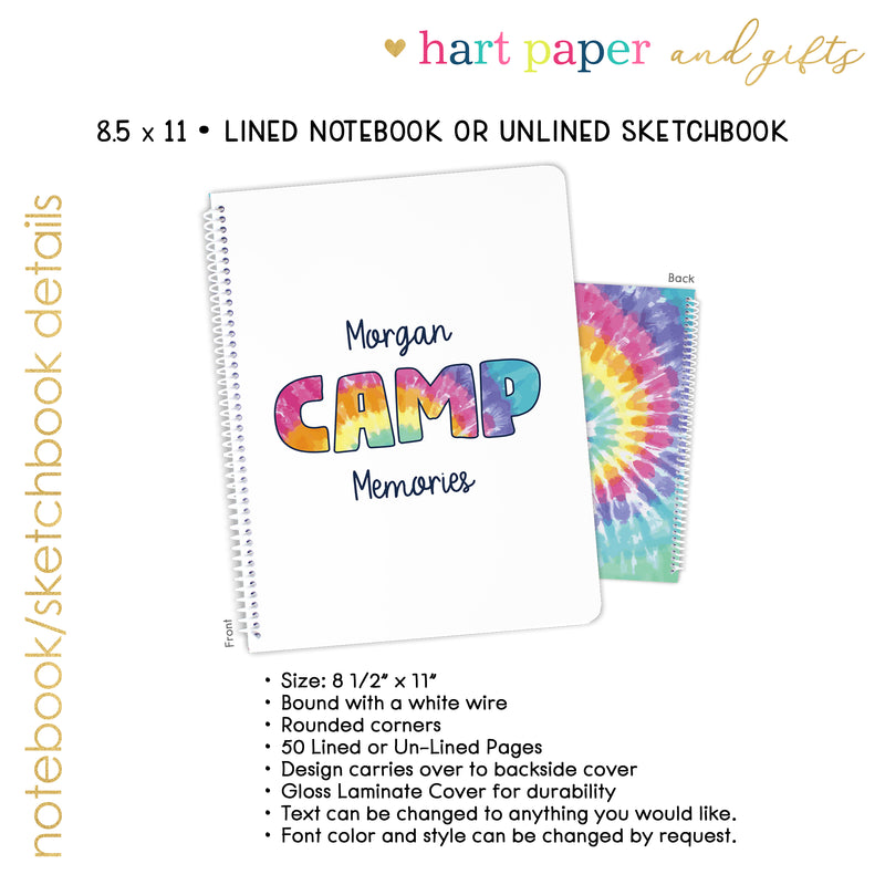 Tie Dye Camping Summer Camp Personalized Custom Notebook or Sketchbook • School Office Supplies