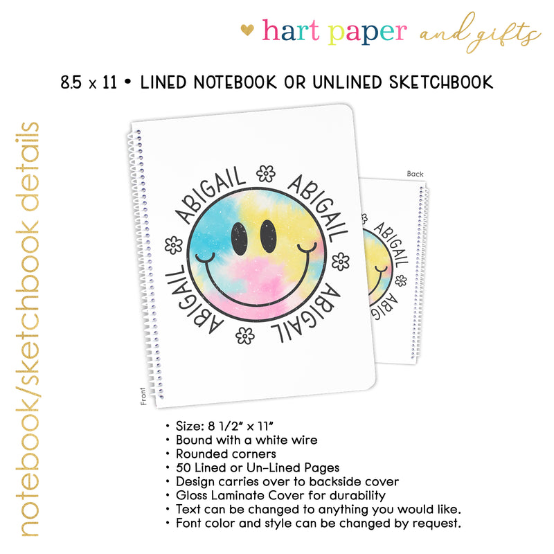 Tie Dye Happy Personalized Custom Notebook or Sketchbook • School Office Supplies