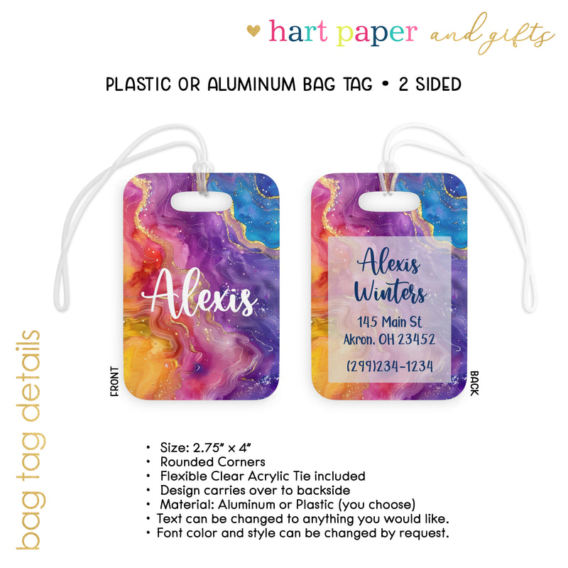 Tie Dye Rainbow Luggage Bag Tag Personalized Custom