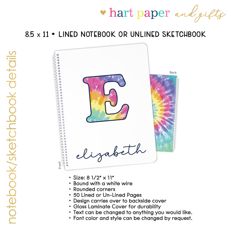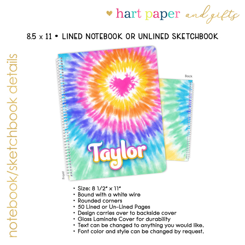 Tie Dye Heart Rainbow Personalized Custom Notebook or Sketchbook • School Office Supplies