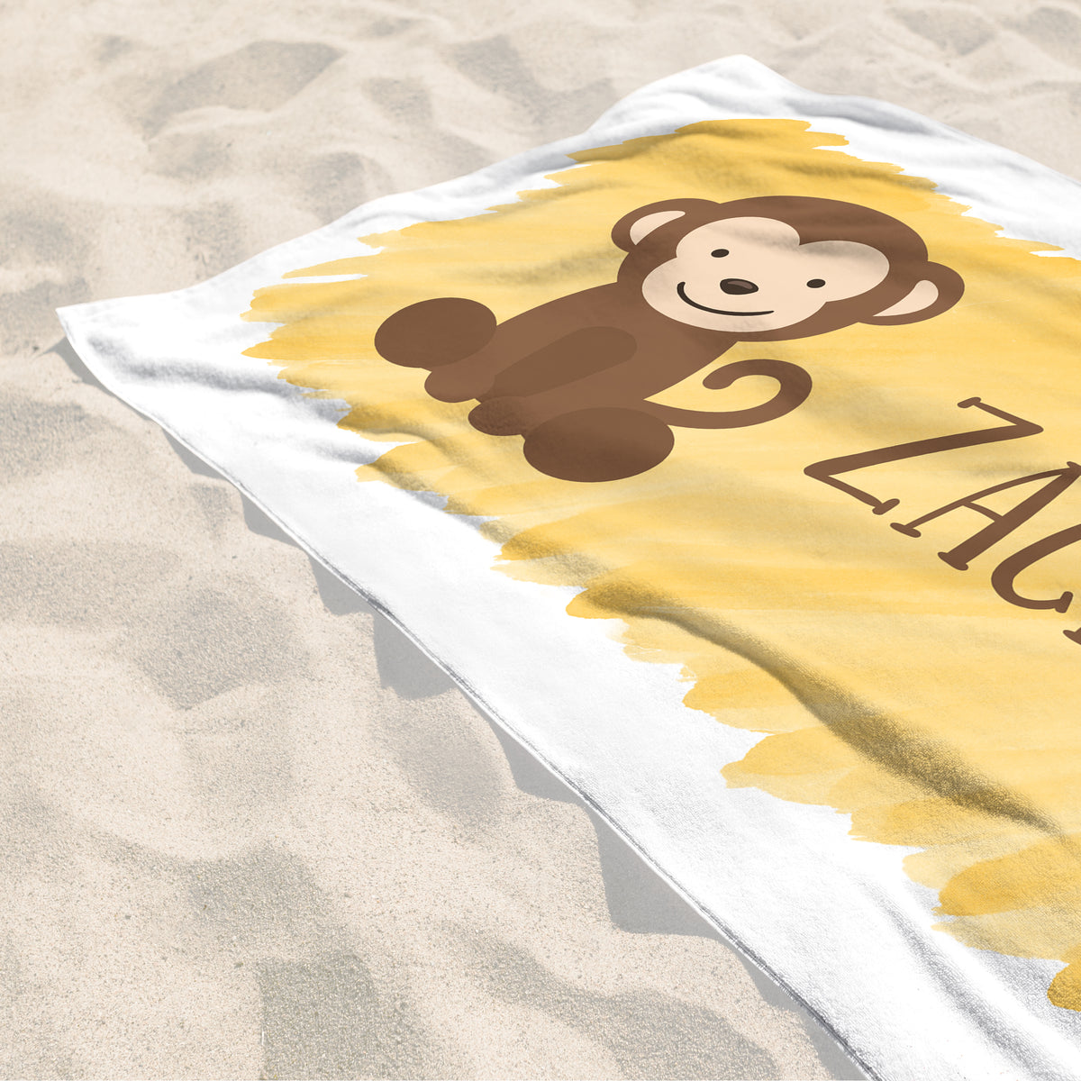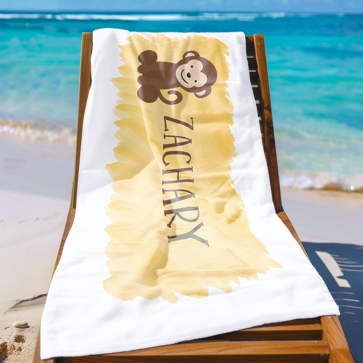 Monkey Personalized Beach Towel • Custom 30x60 Swimming Swim Bath Bathroom Pool