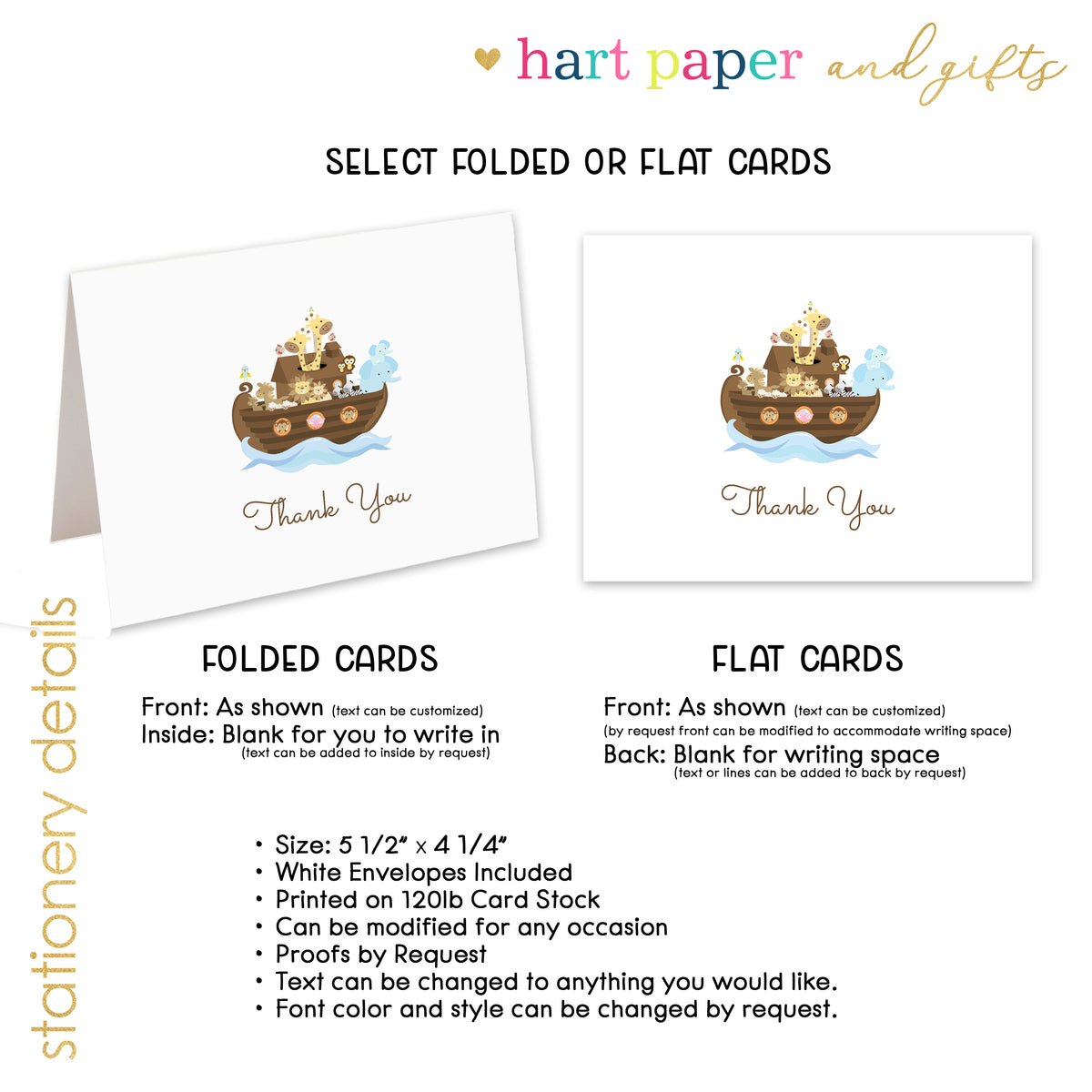 Noah's Ark Thank You Cards • Folded Flat Note Card Stationery