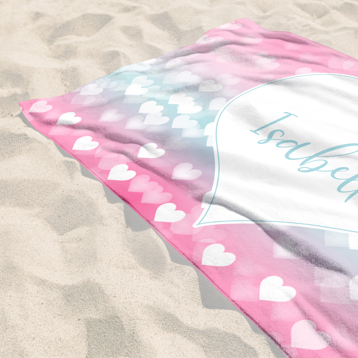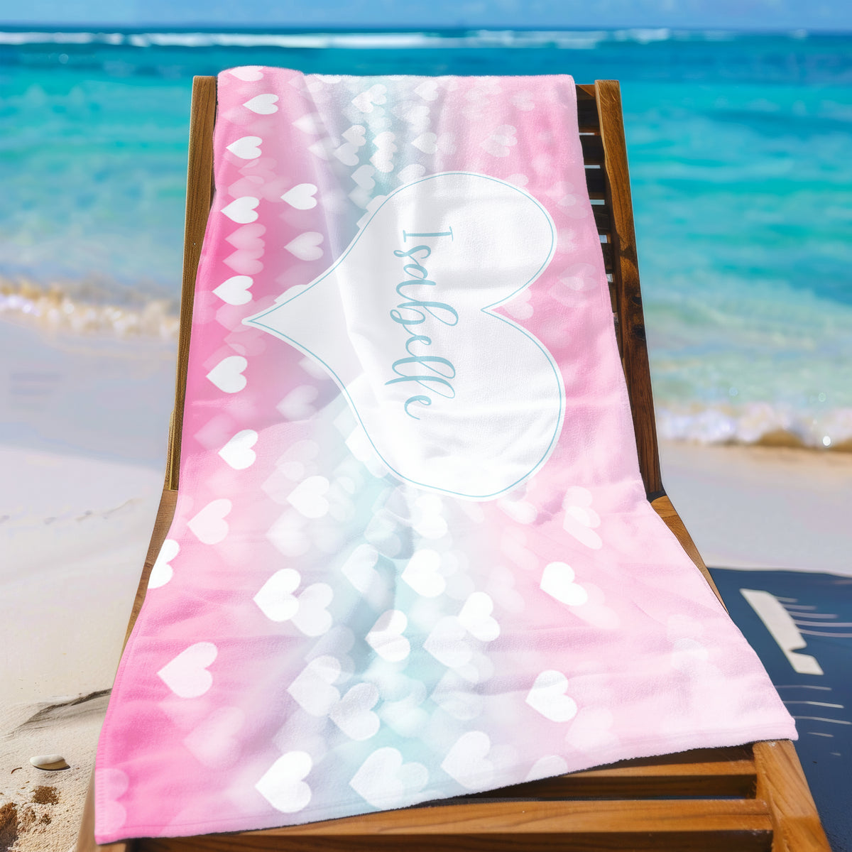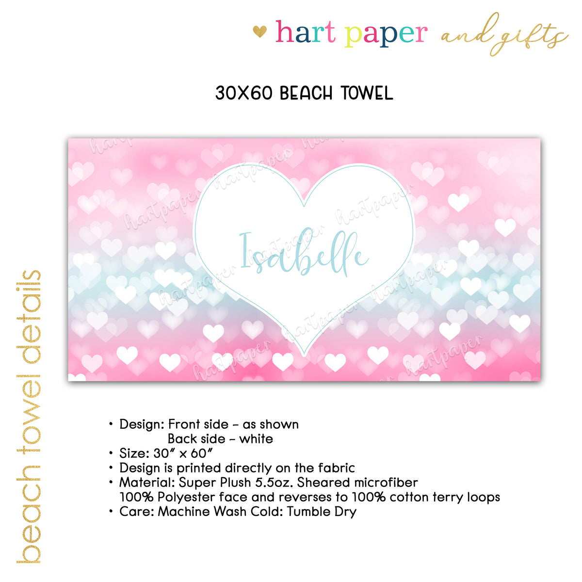 Pink Heart Personalized Beach Towel • Custom 30x60 Swimming Swim Bath Bathroom Pool