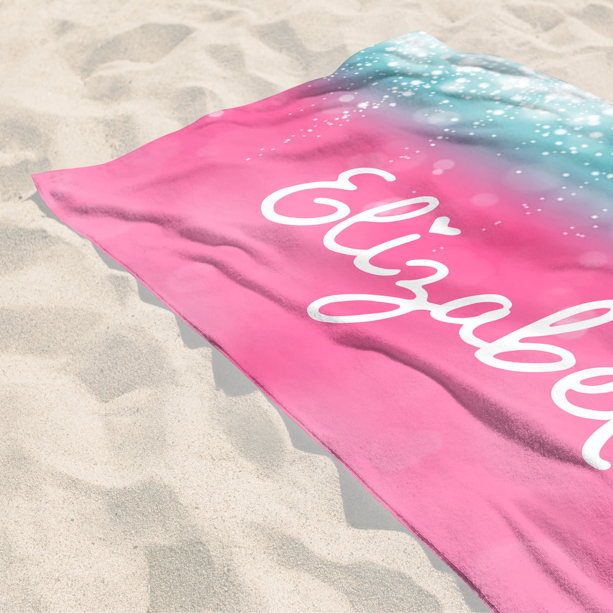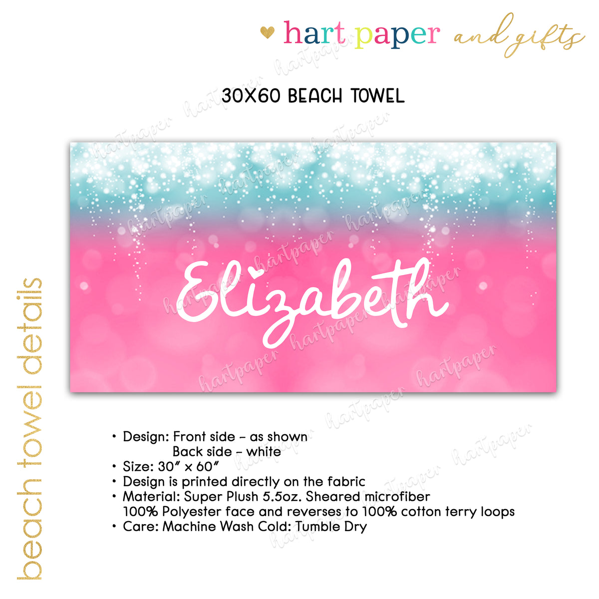 Pink Personalized Beach Towel • Custom 30x60 Swimming Swim Bath Bathroom Pool