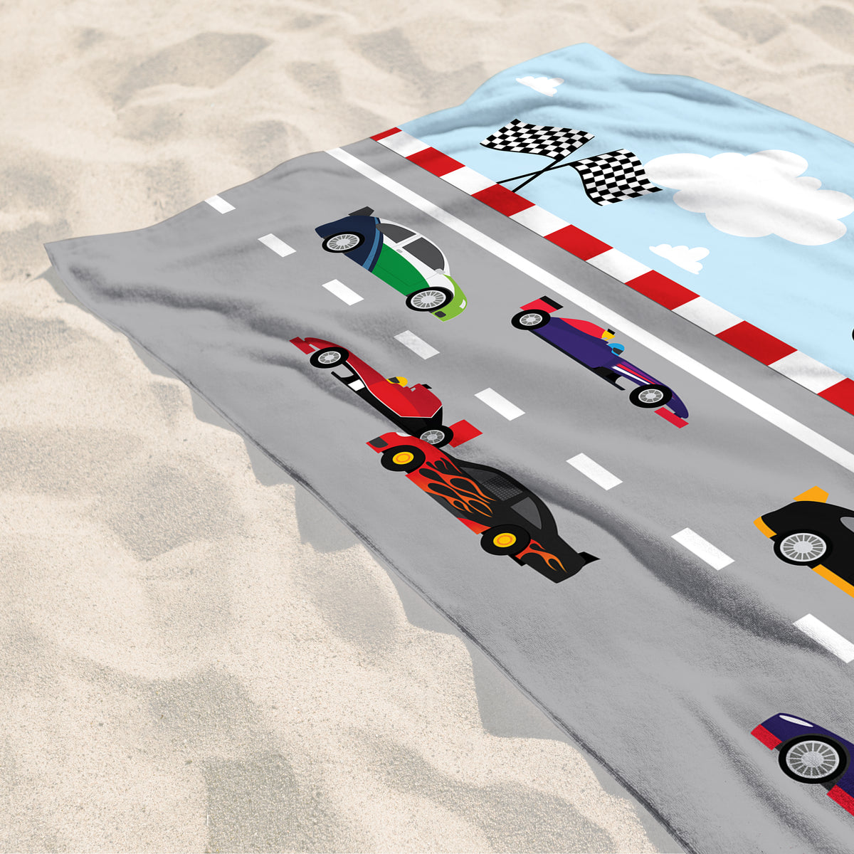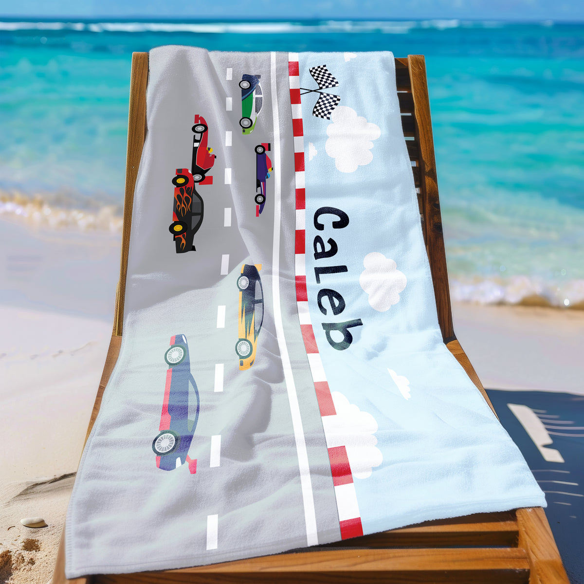 Race Cars Personalized Beach Towel • Custom 30x60 Swimming Swim Bath Bathroom Pool
