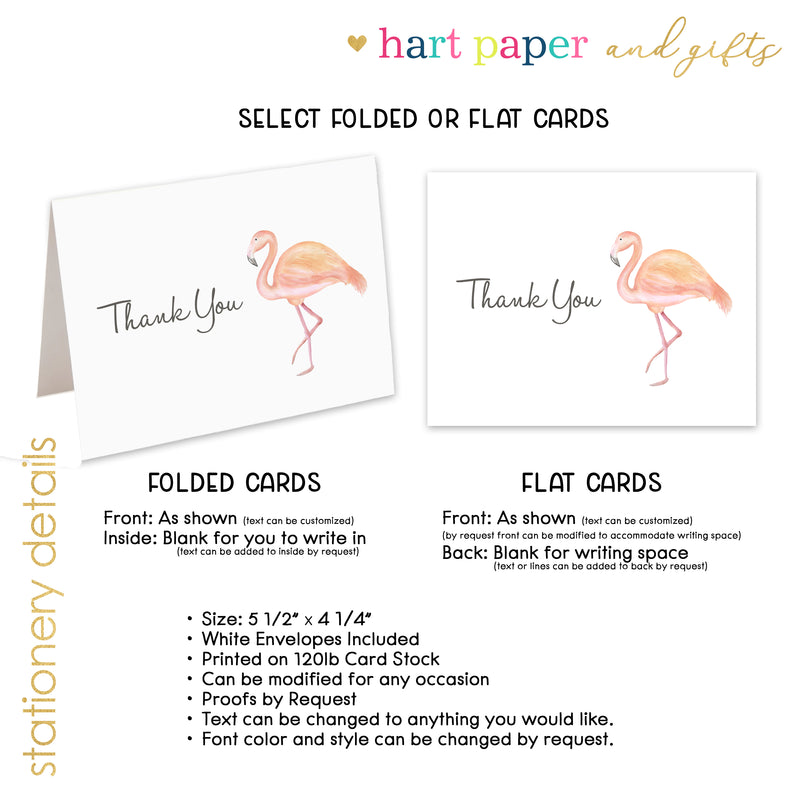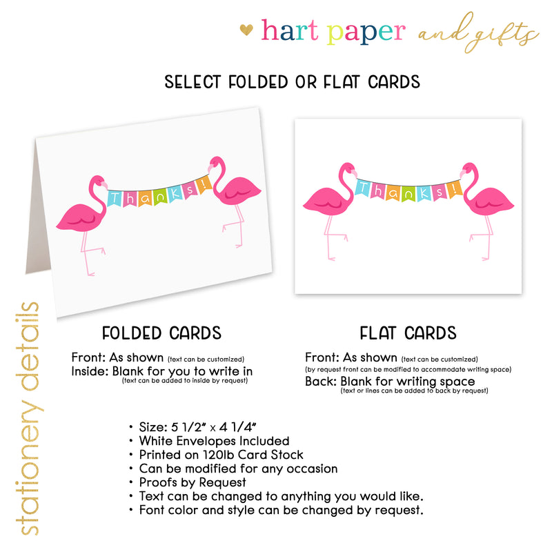 Pink Flamingo Thank You Cards Note Card Personalized Custom Stationery • Flat or Folded