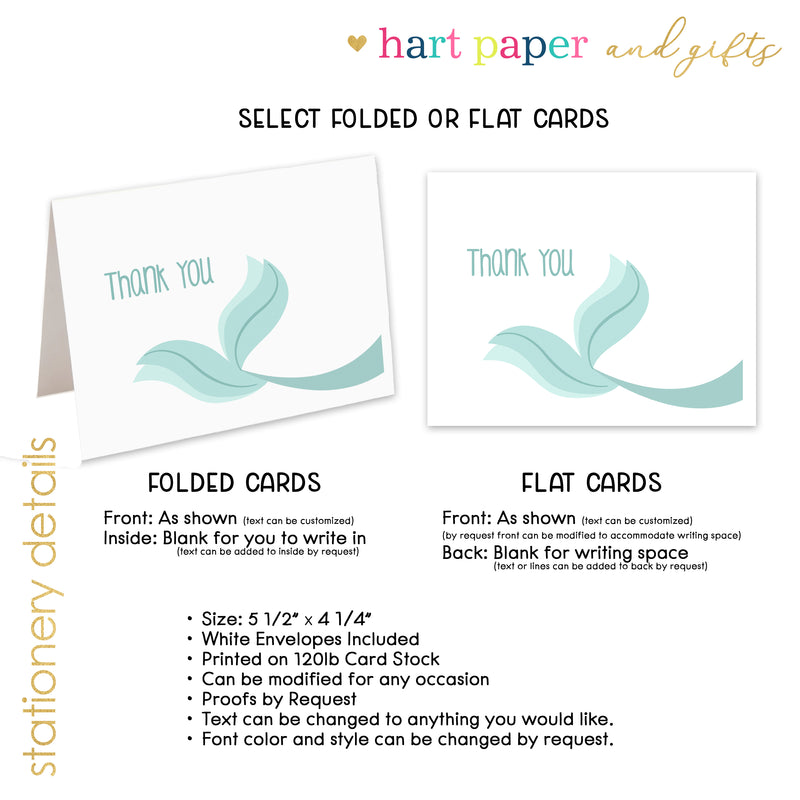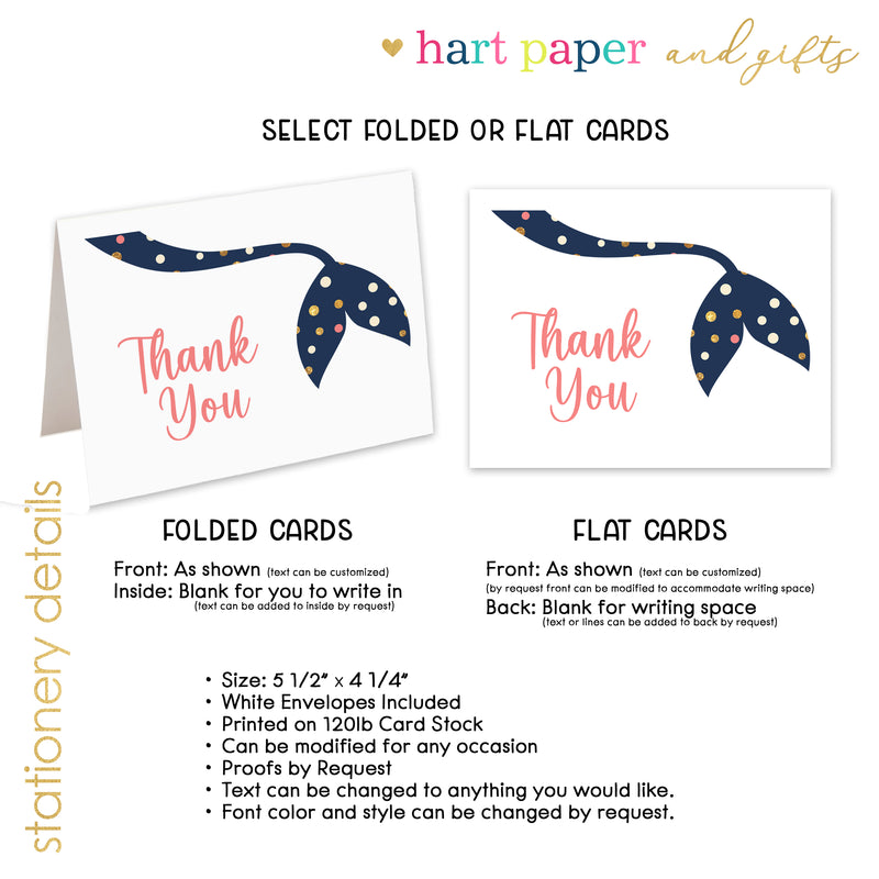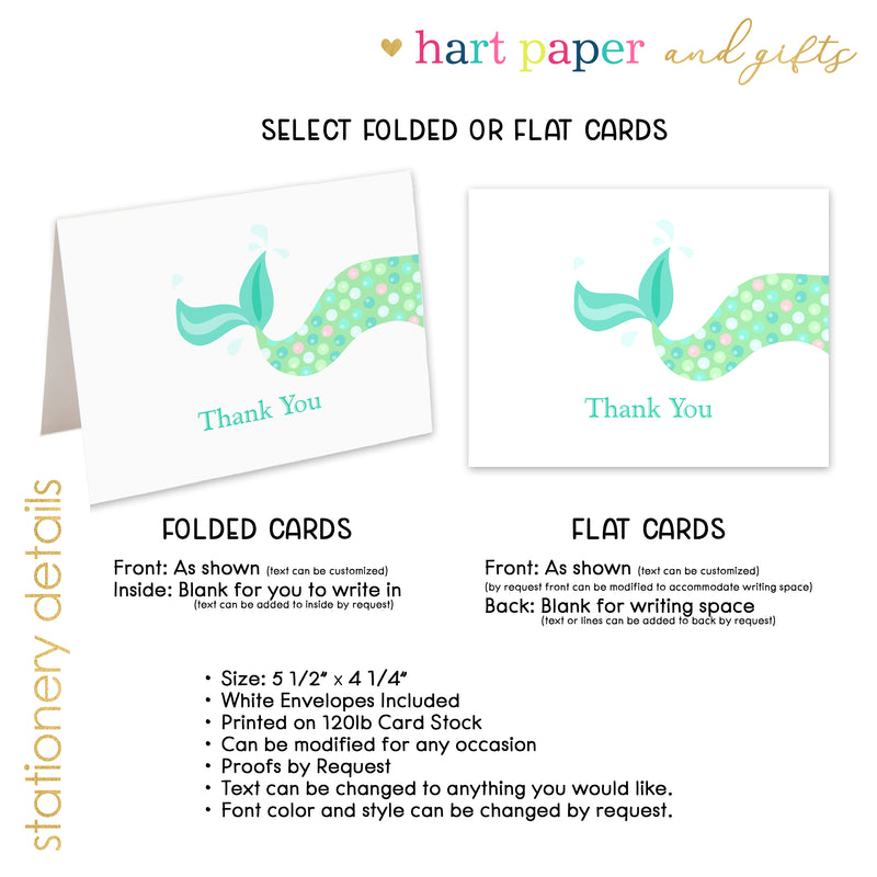 Mermaid Tail Thank You Cards Note Card Personalized Custom Stationery • Flat or Folded