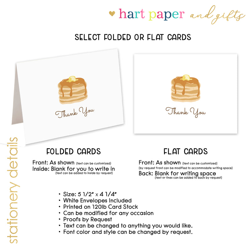 Pancakes Thank You Cards Note Card Personalized Custom Stationery • Flat or Folded