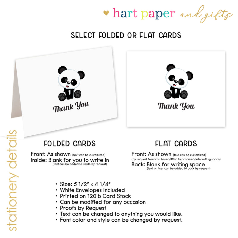 Panda Bear Thank You Cards • Folded Flat Note Card Stationery