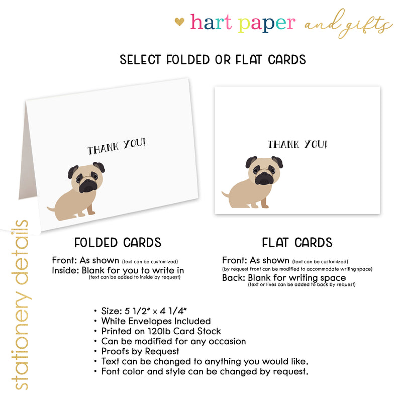 Pug Dog Thank You Cards Note Card Personalized Custom Stationery • Flat or Folded