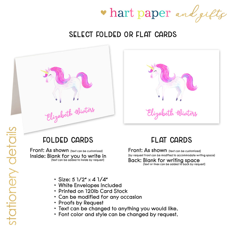 Rainbow Unicorn Thank You Cards Note Card Personalized Custom Stationery • Flat or Folded