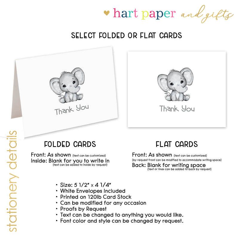Elephant Thank You Cards Note Card Personalized Custom Stationery • Flat or Folded