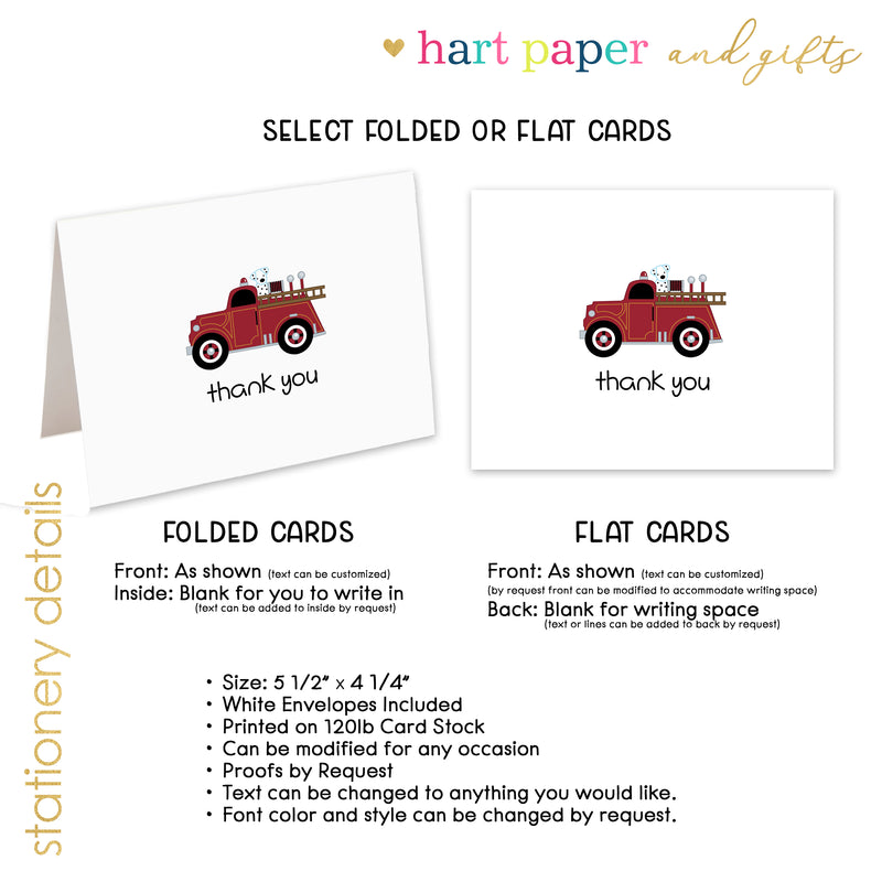 FIretruck Fire Truck Thank You Cards • Folded Flat Note Card Stationery