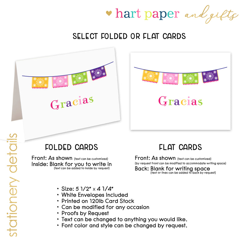 Fiesta Banner Thank You Cards Note Card Personalized Custom Stationery • Flat or Folded