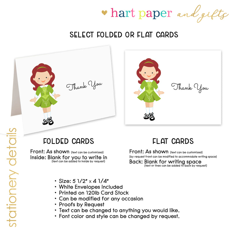 Irish Dancer Dancing Thank You Cards Note Card Personalized Custom Stationery • Flat or Folded
