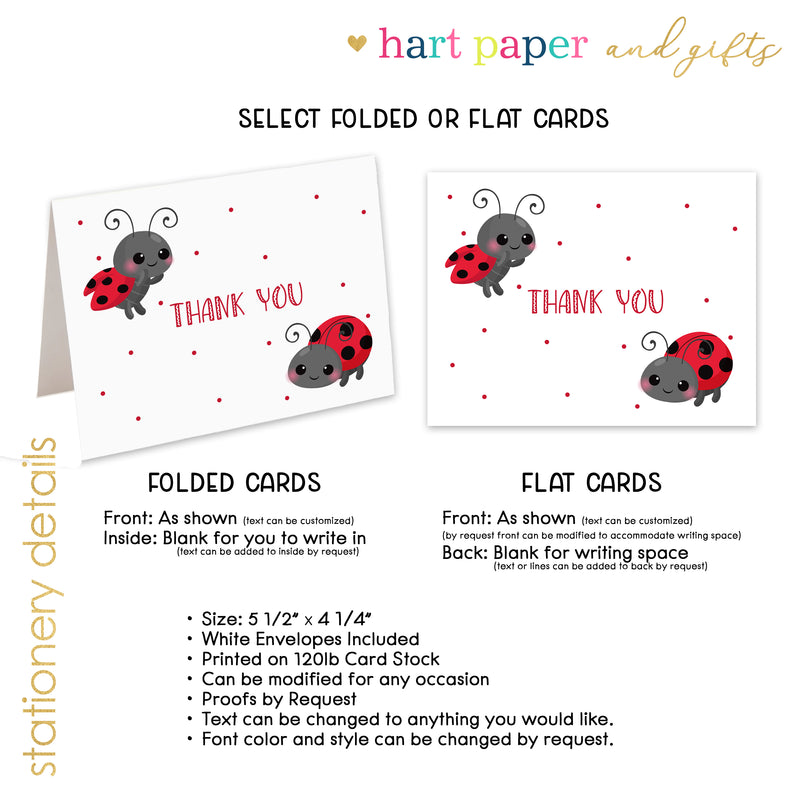 Ladybug Lady Bug Thank You Cards Note Card Personalized Custom Stationery • Flat or Folded