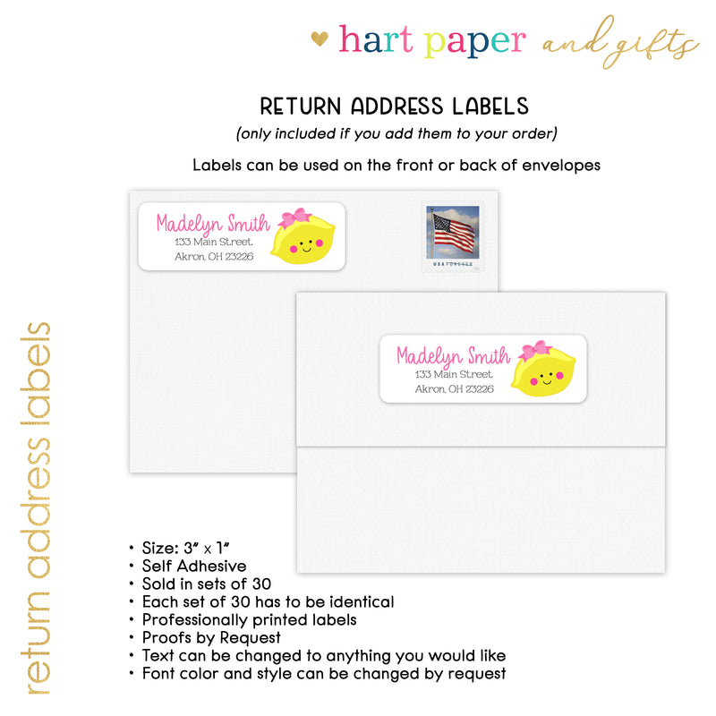 Girl Lemon Thank You Cards Note Card Personalized Custom Stationery • Flat or Folded