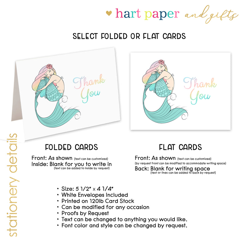 Mermaid c Thank You Cards Note Card Personalized Custom Stationery • Flat or Folded