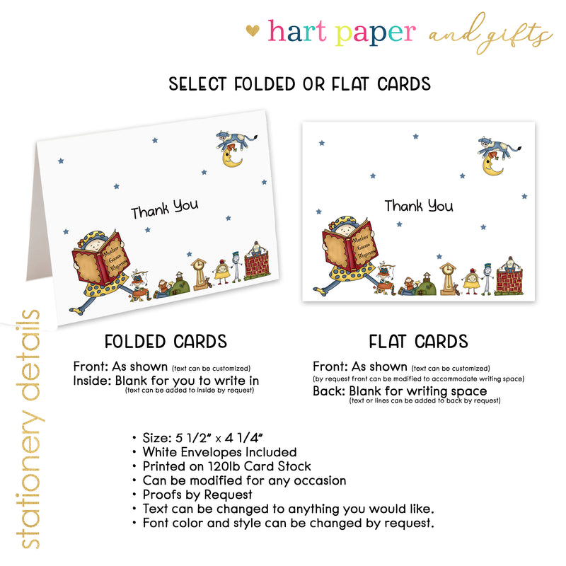 Mother Goose Nursery Rhyme Thank You Cards • Folded Flat Note Card Stationery