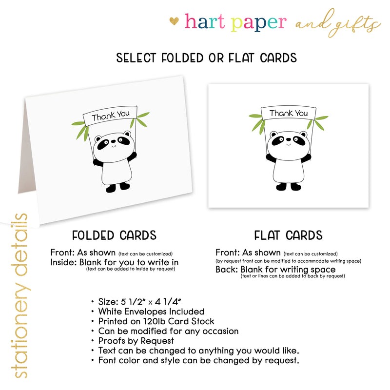 Panda Bear Thank You Cards • Folded Flat Note Card Stationery