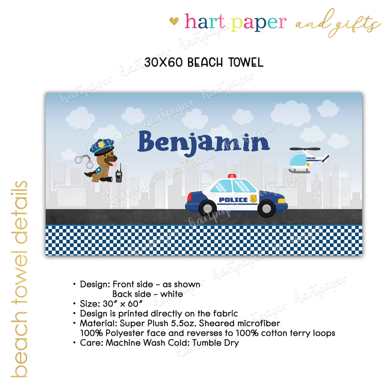 Police Personalized Beach Towel • Custom 30x60 Swimming Swim Bath Bathroom Pool