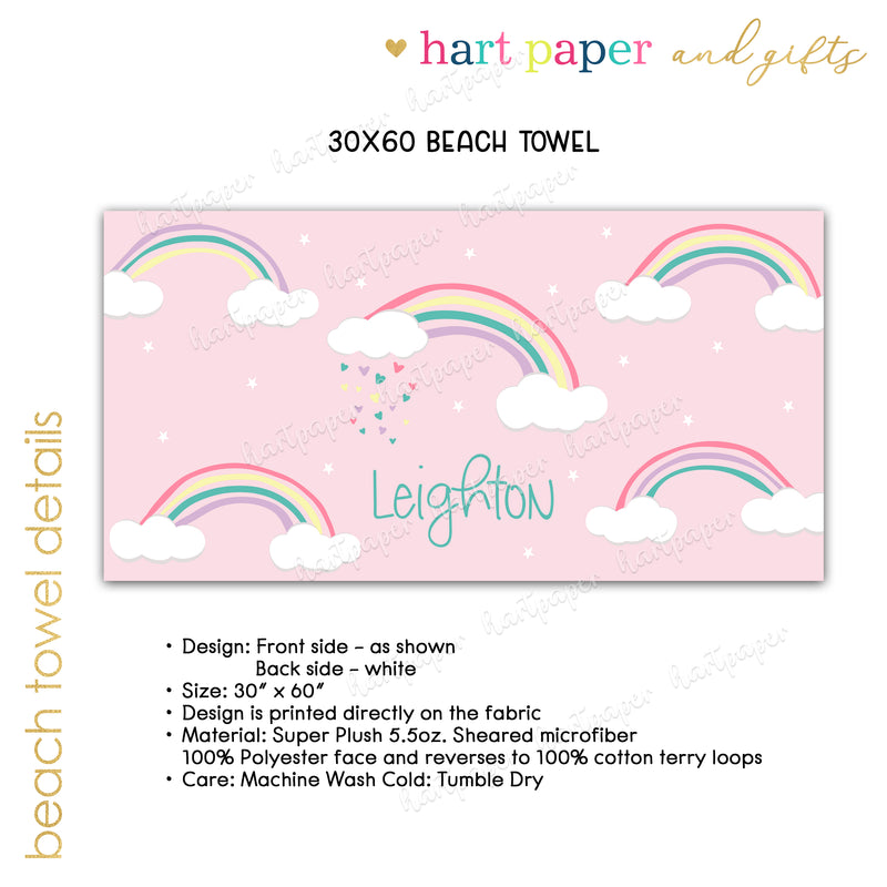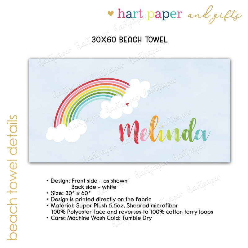 Rainbow Clouds Personalized Beach Towel • Custom 30x60 Swimming Swim Bath Bathroom Pool