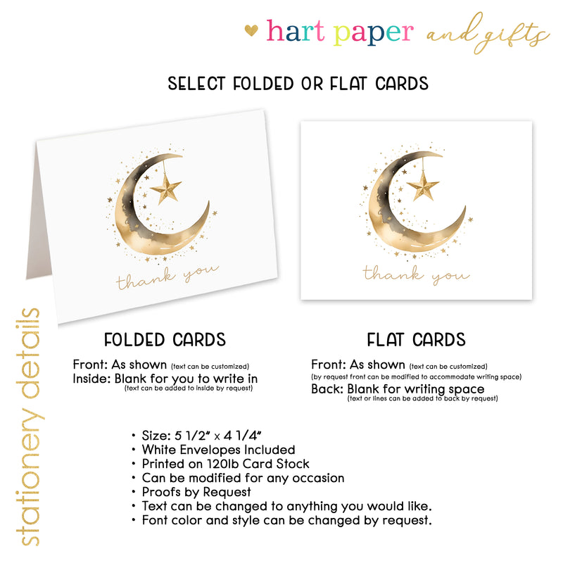 Moon Stars Celestial Thank You Cards • Folded Flat Card Notecard Stationery