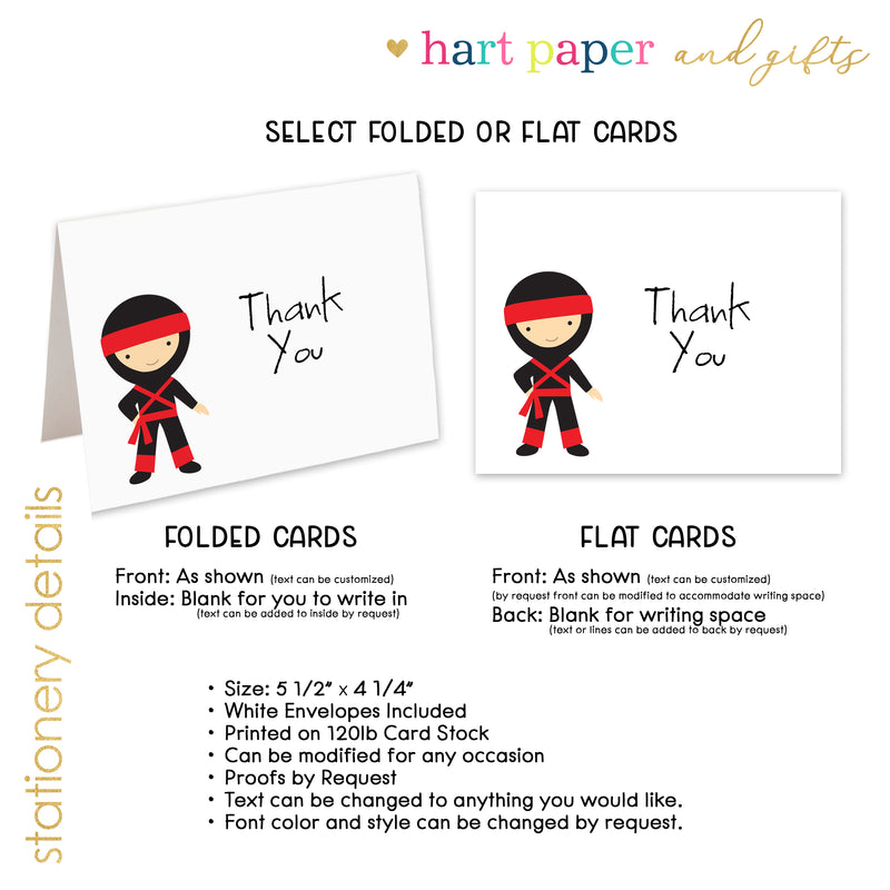 Ninja Karate Thank You Cards Note Card Personalized Custom Stationery • Flat or Folded