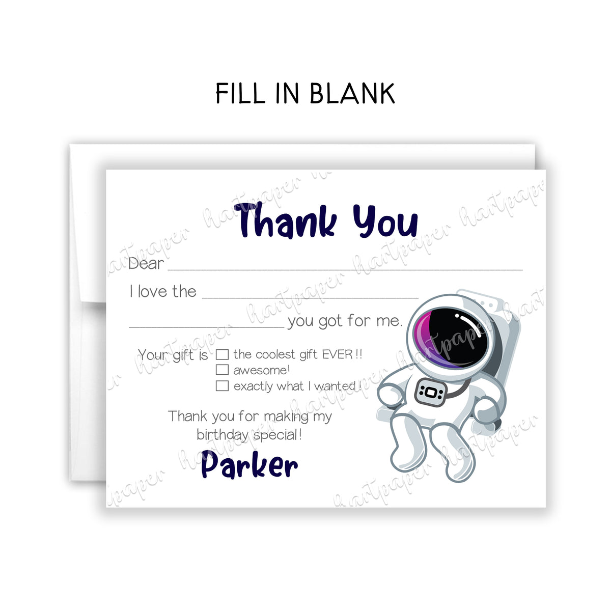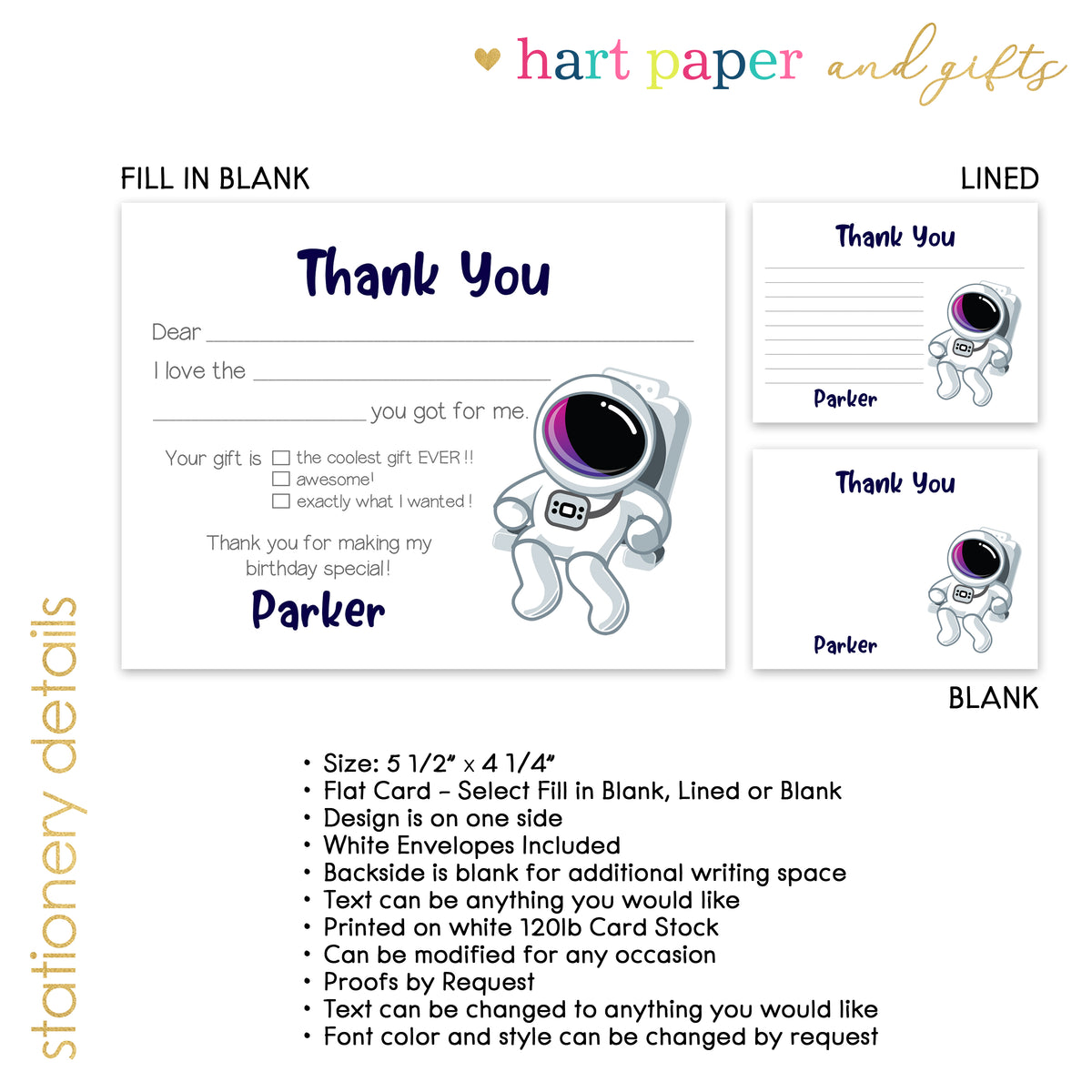Astronaut Thank You Note Card Personalized Custom Stationery • Fill in Blank, Lined or Blank Cards