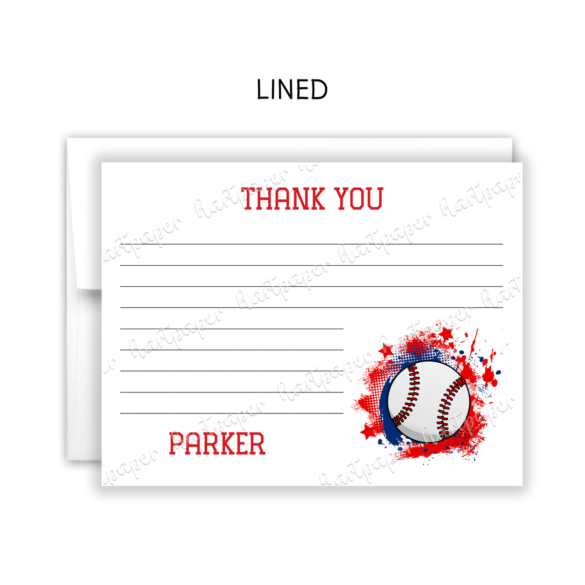 Baseball Thank You Note Card Personalized Custom Stationery • Fill in Blank, Lined or Blank Cards