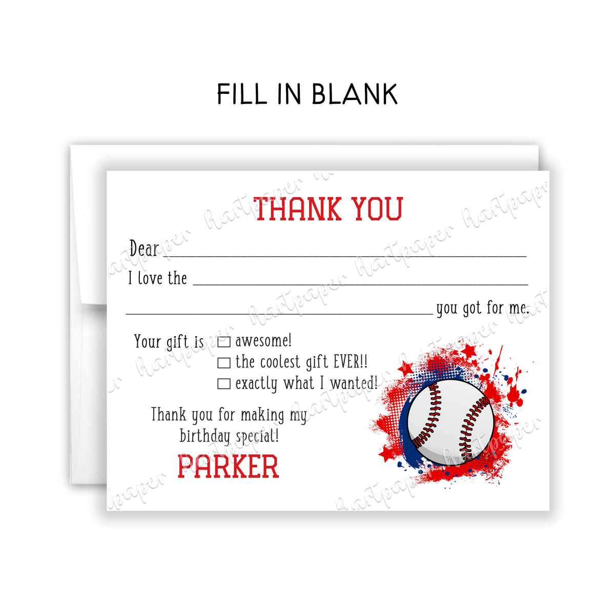 Our fill-in-the-blank thank you cards are ideal for kids’ birthday parties, baby showers, and a variety of special occasions including holidays, school events, and family celebrations.