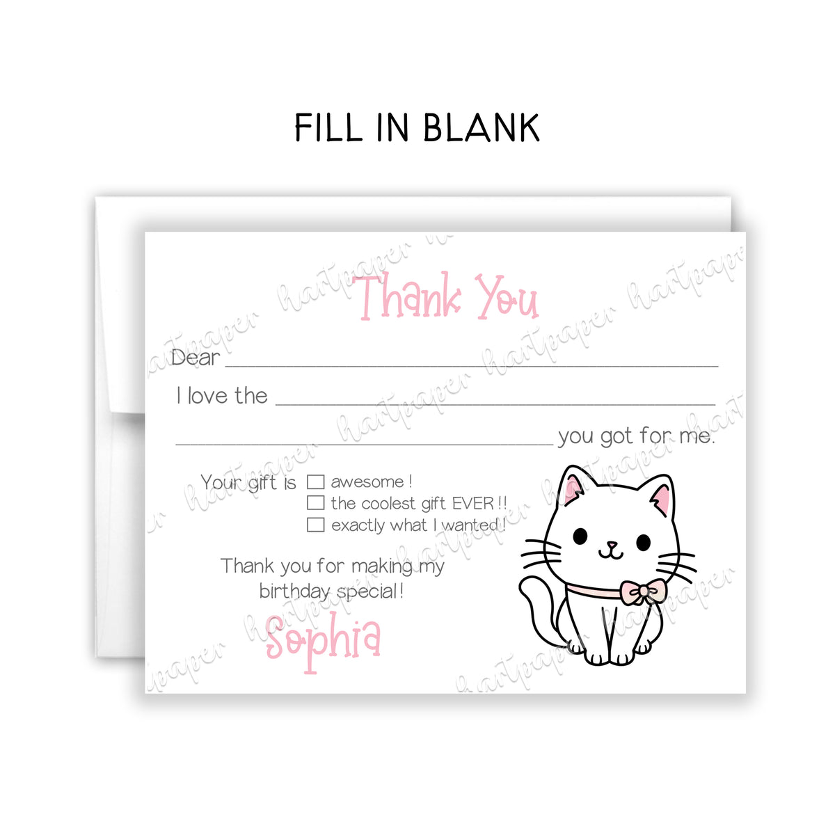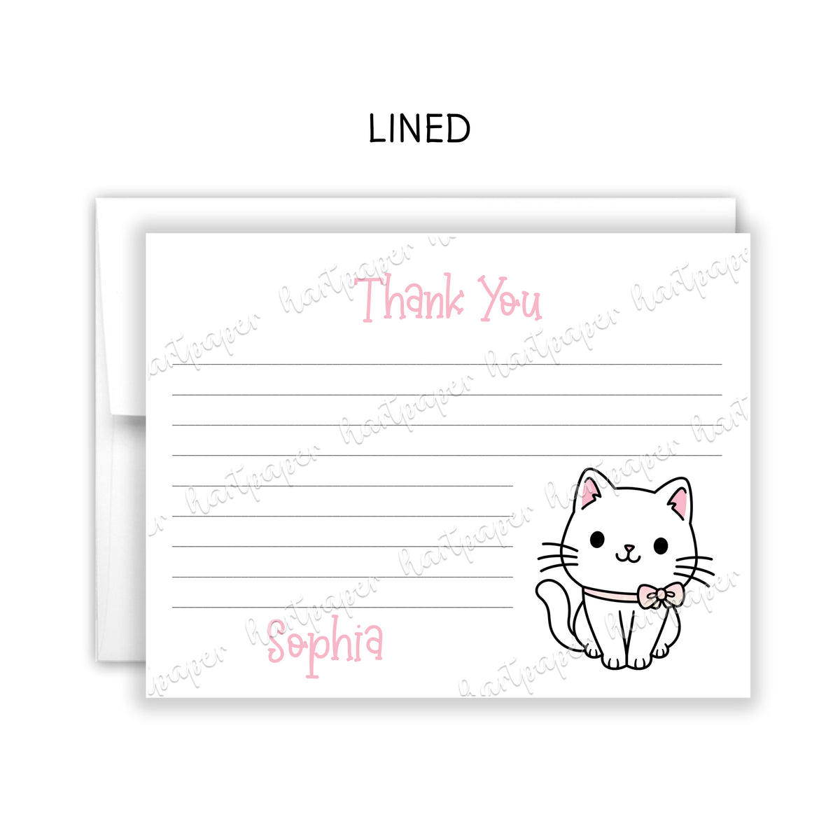Cat Kitten Thank You Note Card Personalized Custom Stationery • Fill in Blank, Lined or Blank Cards