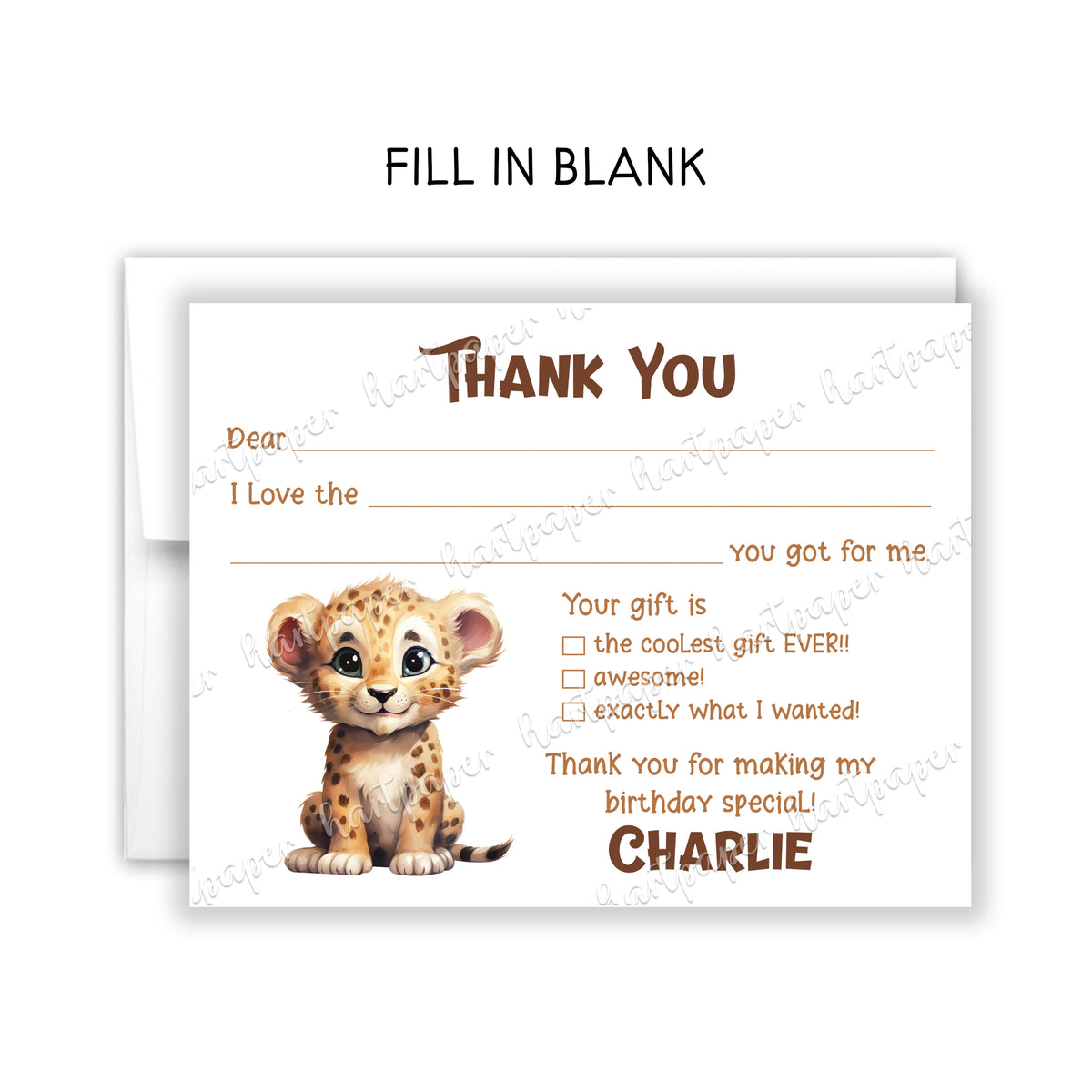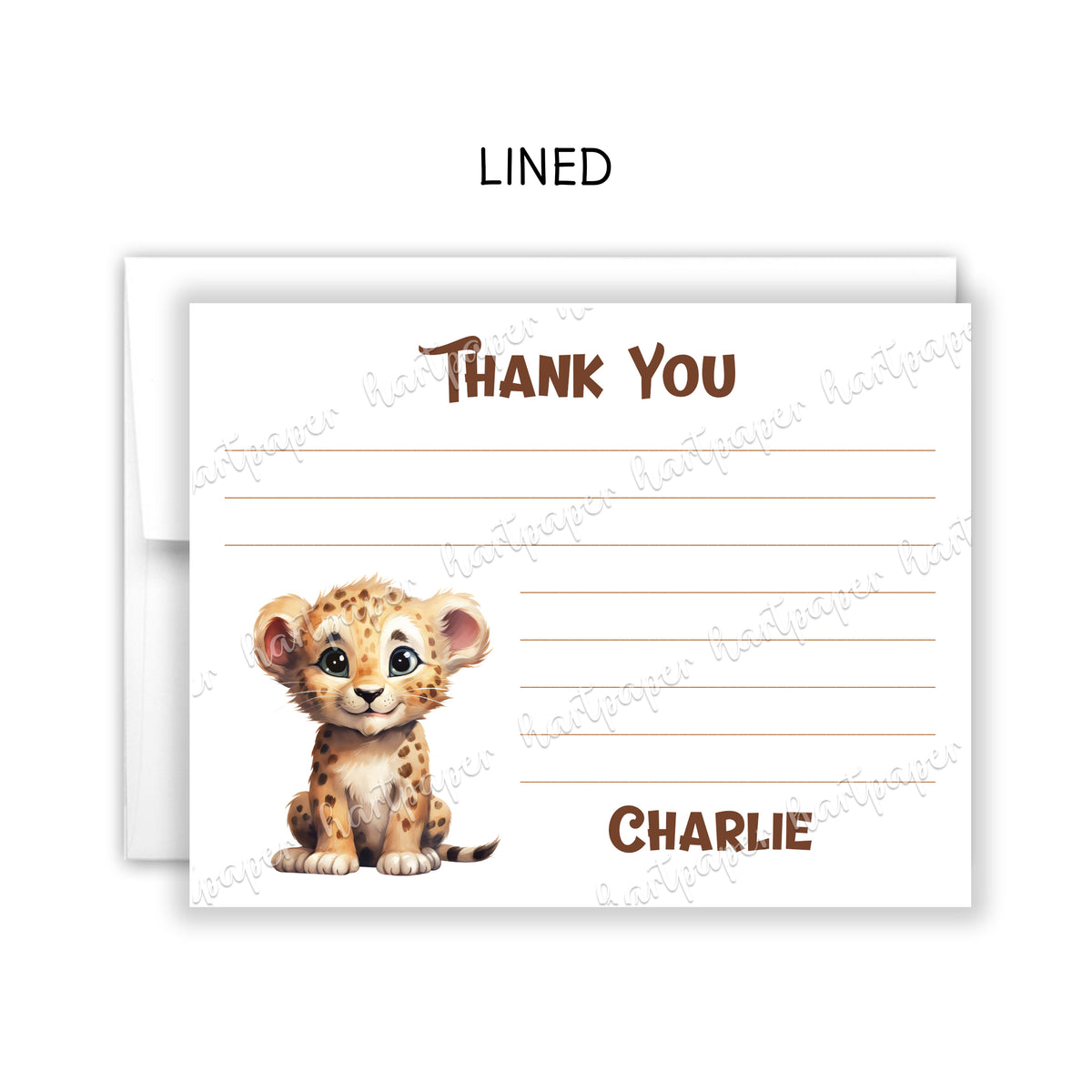 Cheetah Thank You Note Card Personalized Custom Stationery • Fill in Blank, Lined or Blank Cards