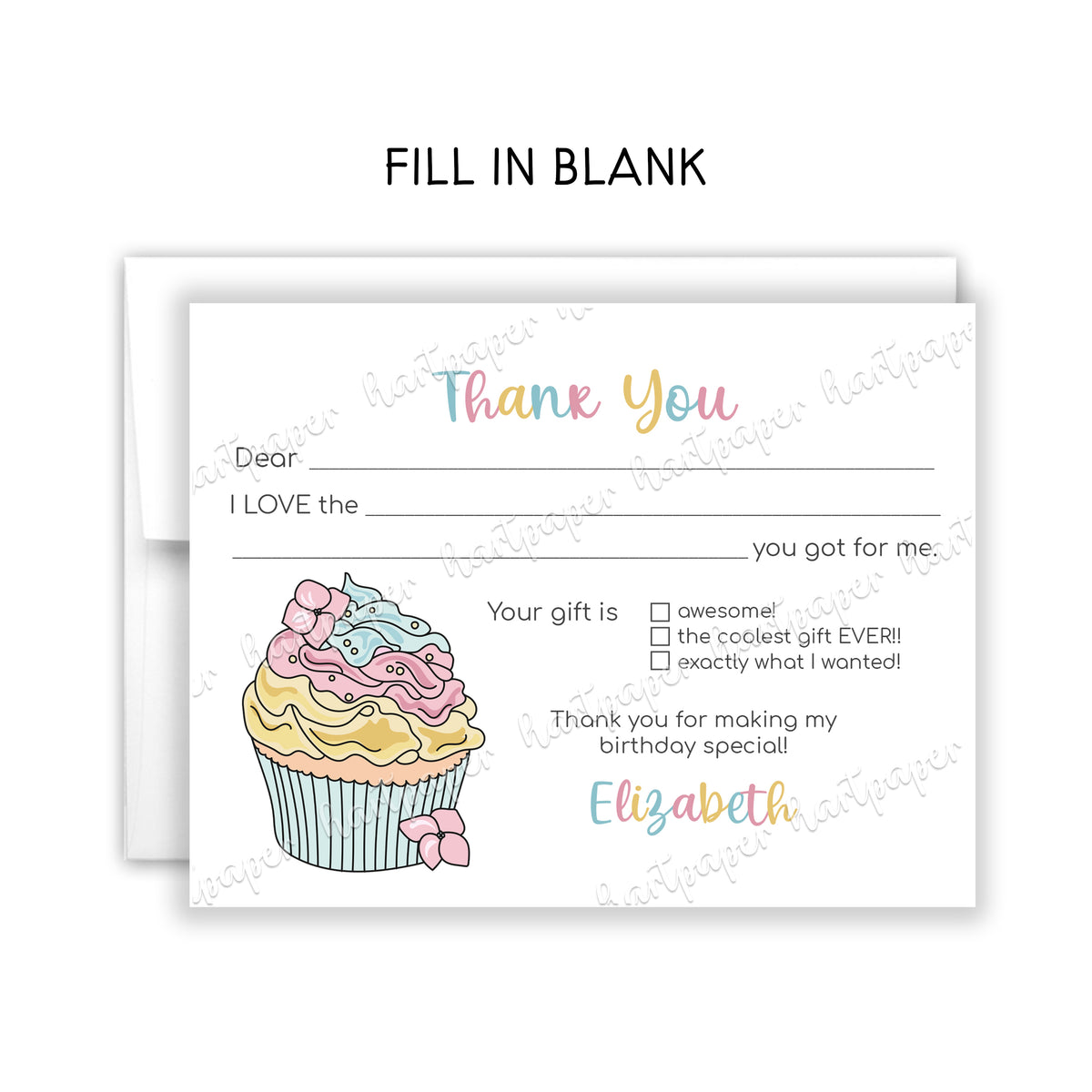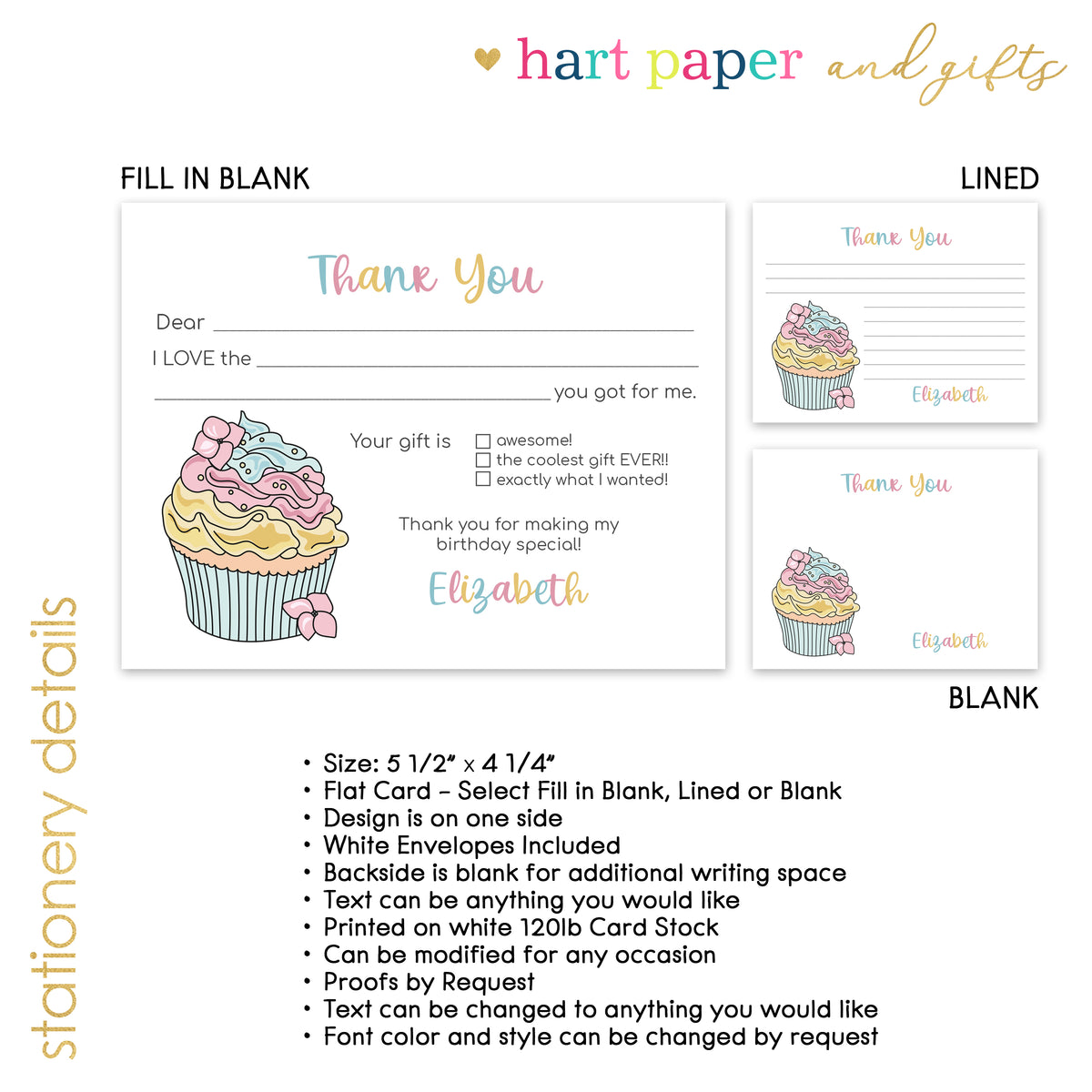 Cupcake Thank You Note Card Personalized Custom Stationery • Fill in Blank, Lined or Blank Cards