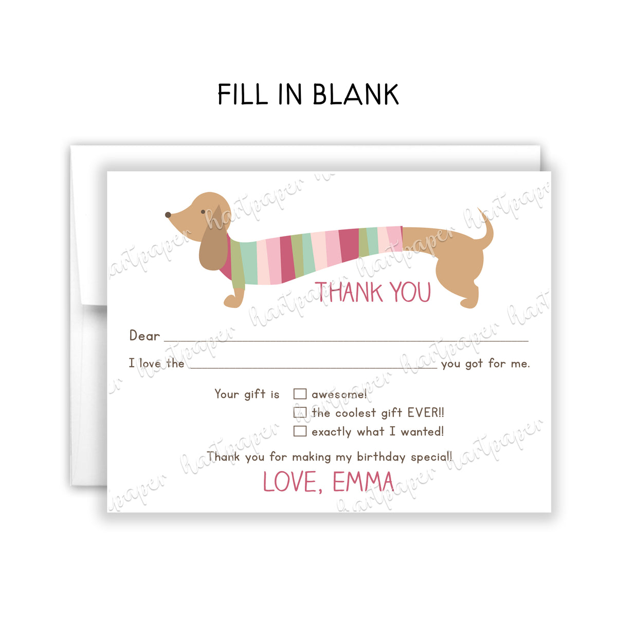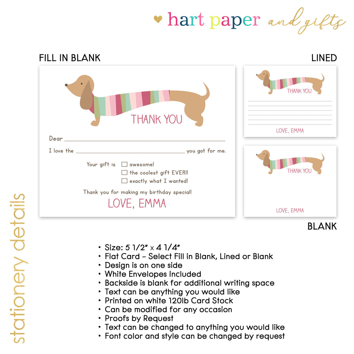 Dachshund Dog Thank You Note Card Personalized Custom Stationery • Fill in Blank, Lined or Blank Cards