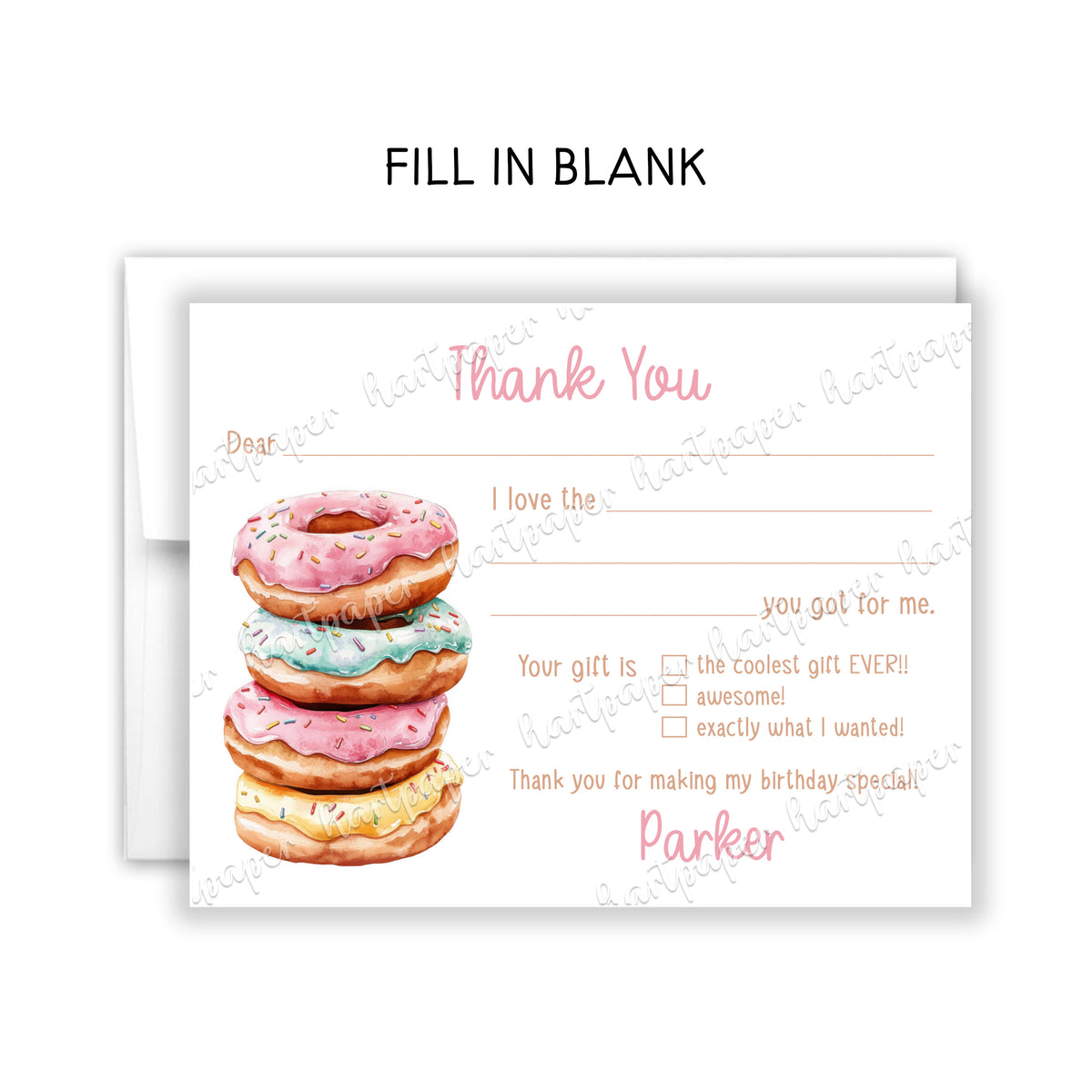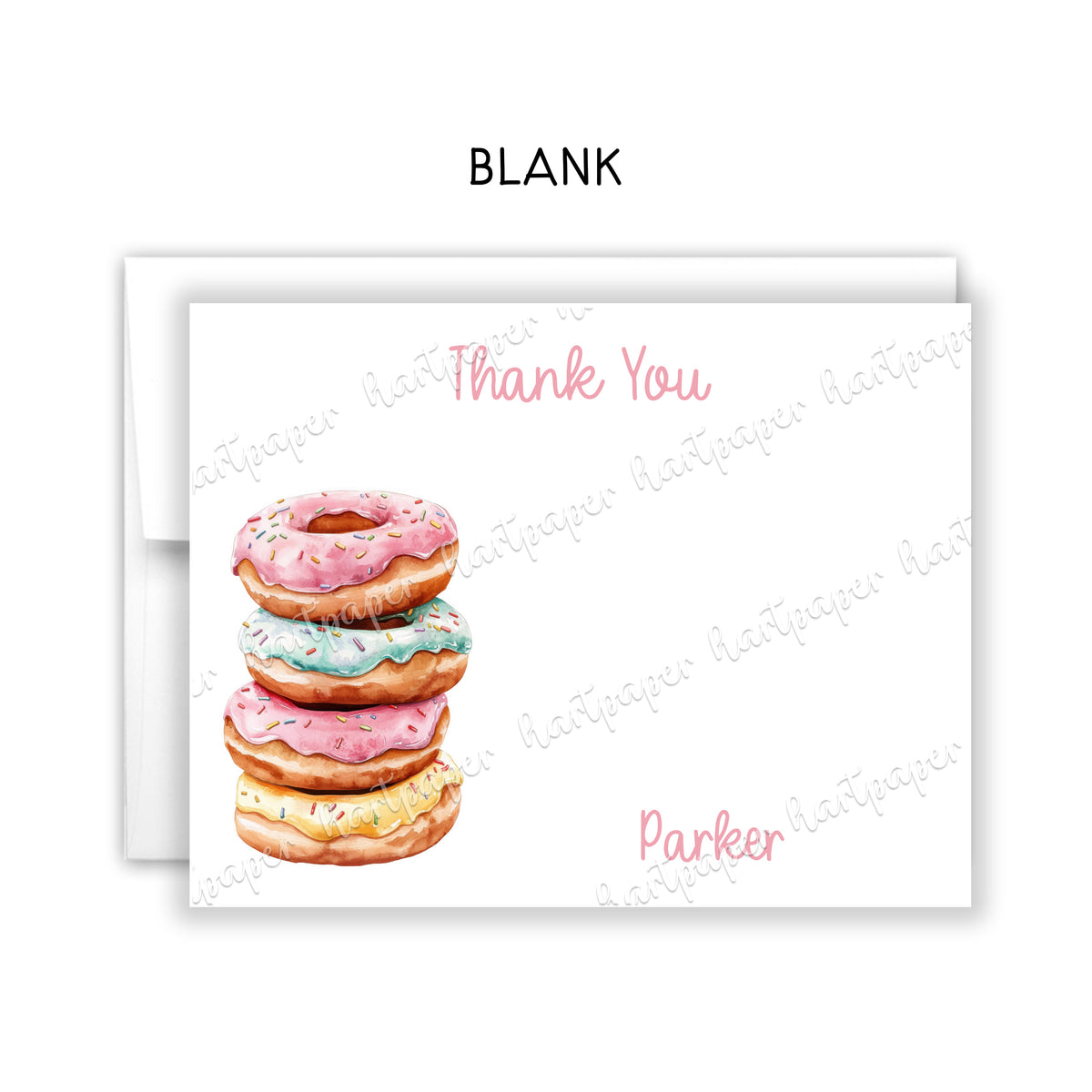 Donut Thank You Note Card Personalized Custom Stationery • Fill in Blank, Lined or Blank Cards