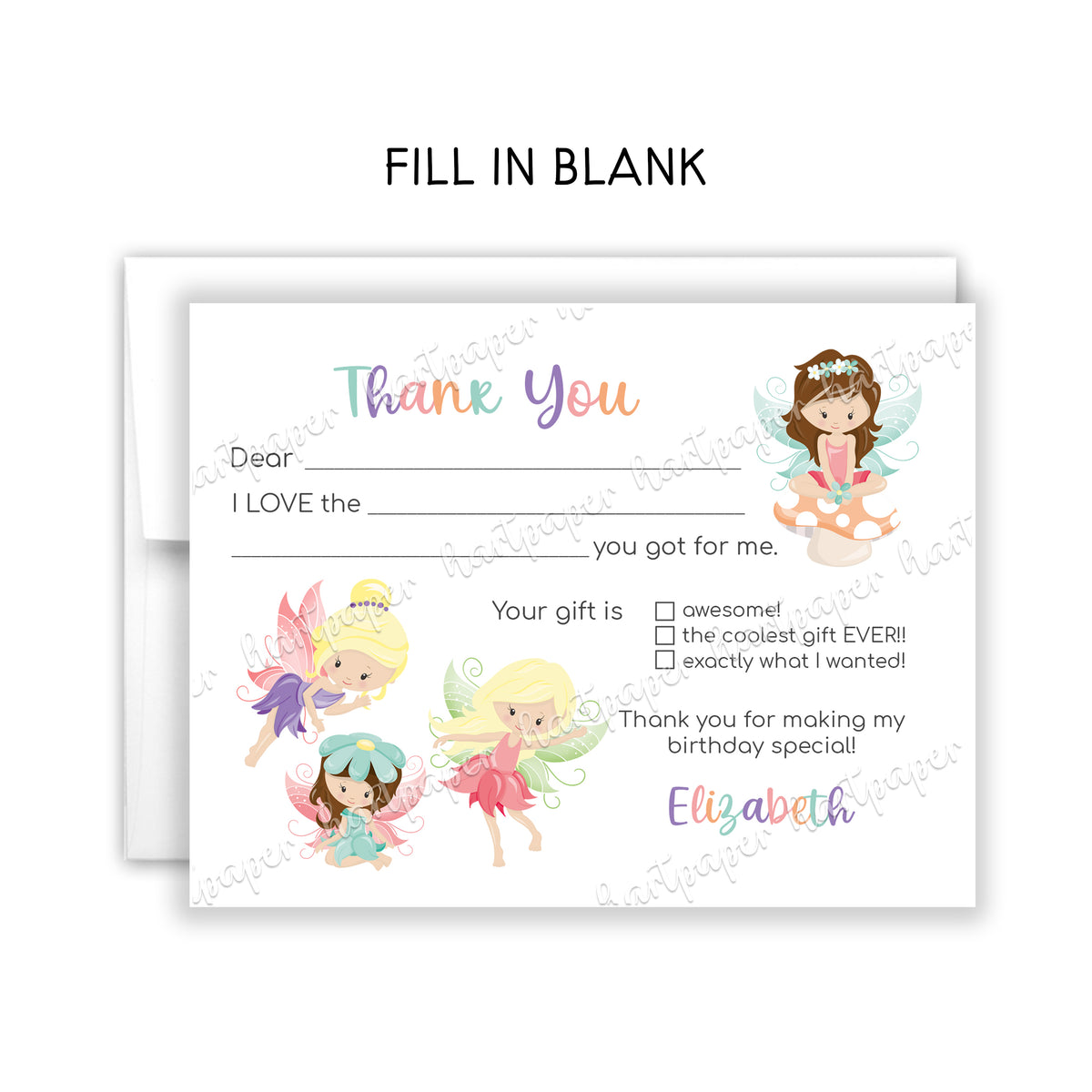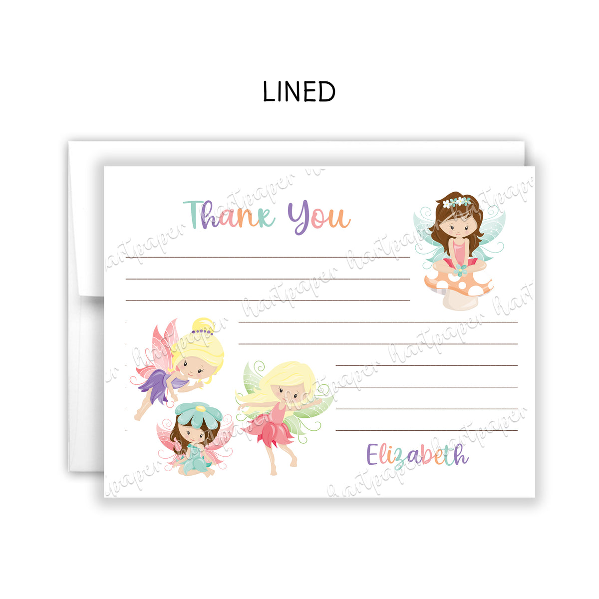 Fairy Thank You Note Card Personalized Custom Stationery • Fill in Blank, Lined or Blank Cards