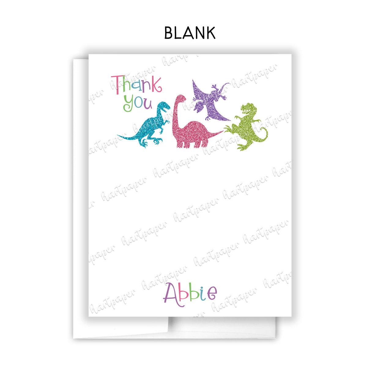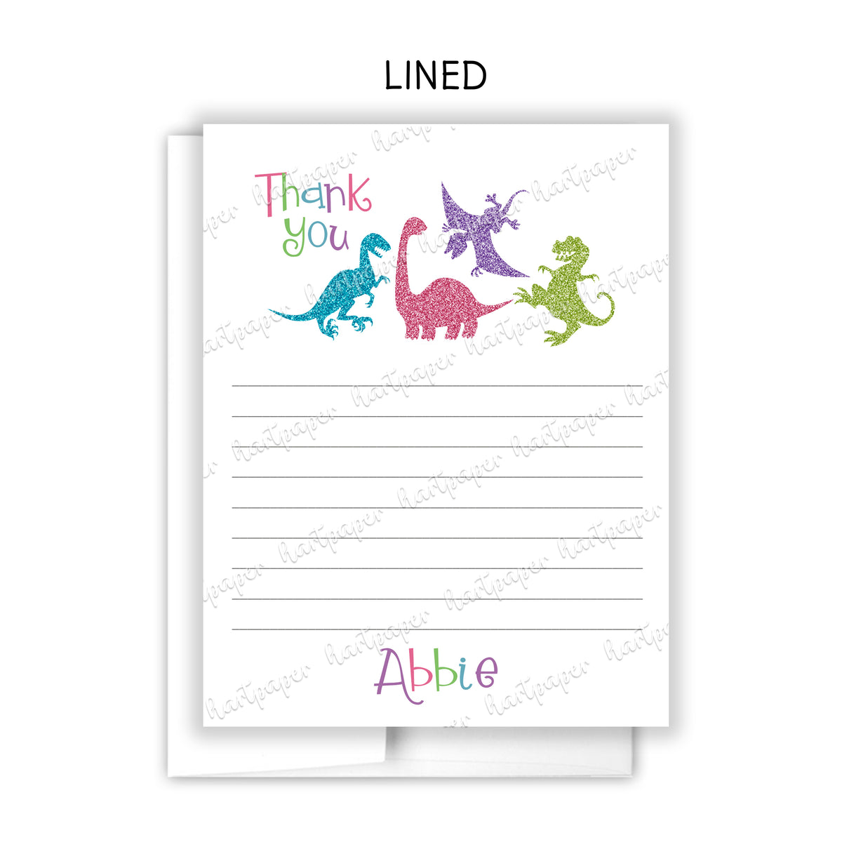 Girly Dinosaur Thank You Note Card Personalized Custom Stationery • Fill in Blank, Lined or Blank Cards
