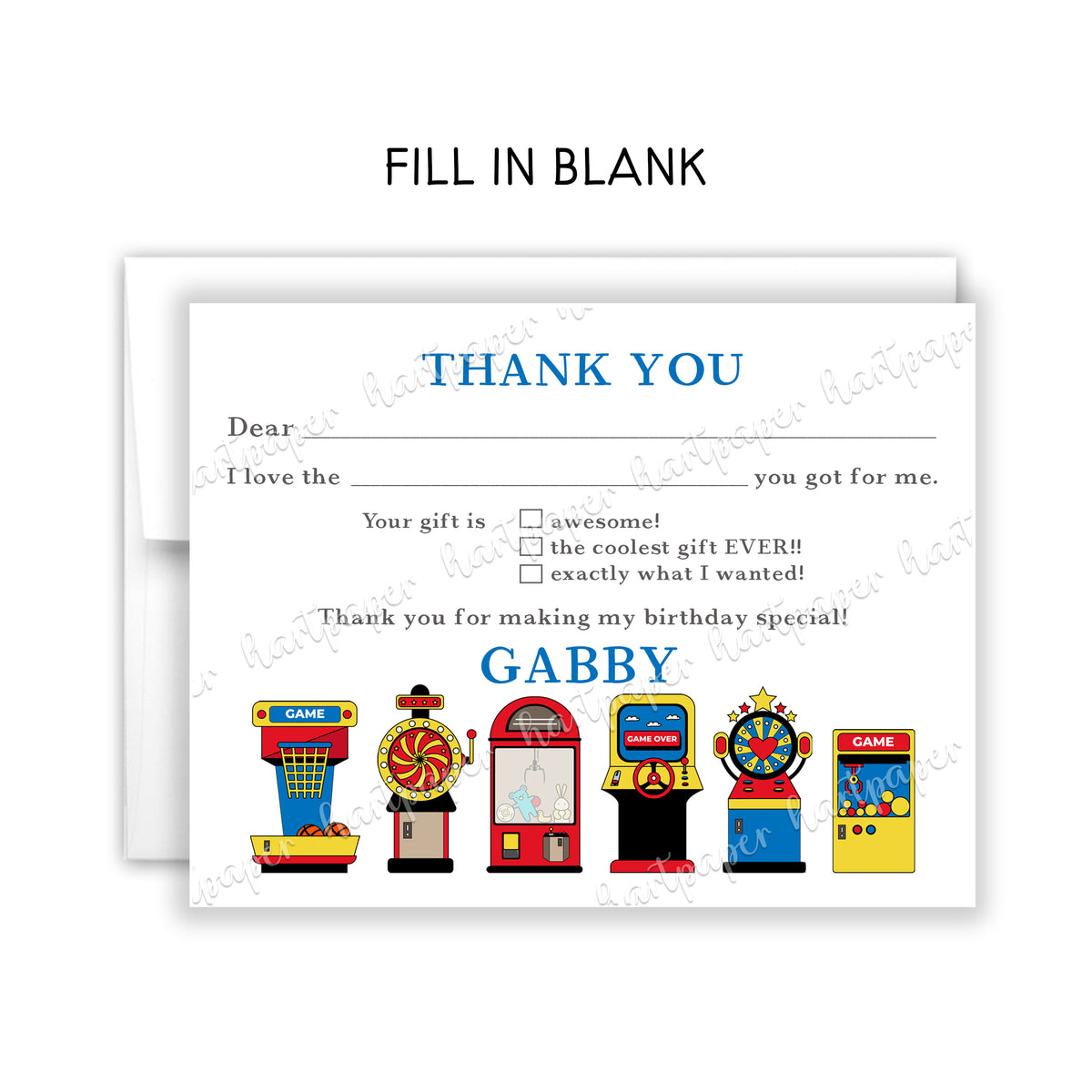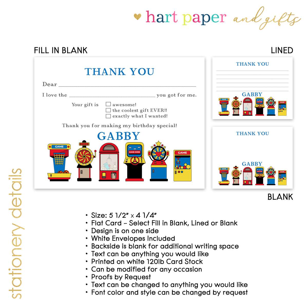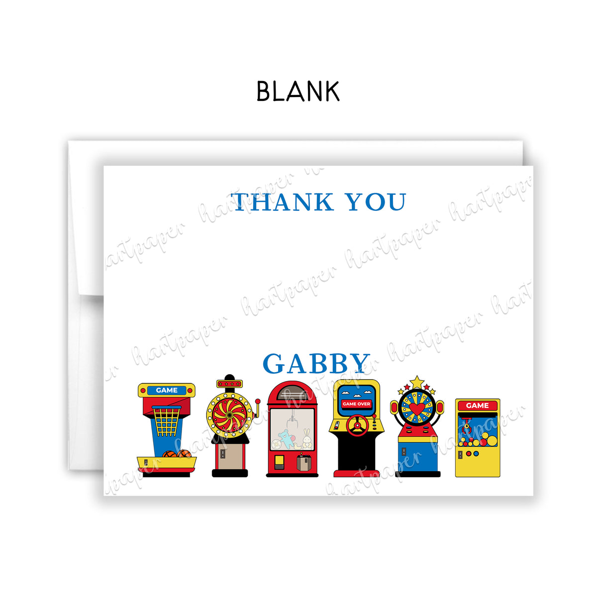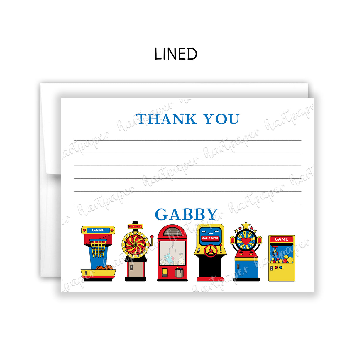 Arcade Thank You Note Card Personalized Custom Stationery • Fill in Blank, Lined or Blank Cards