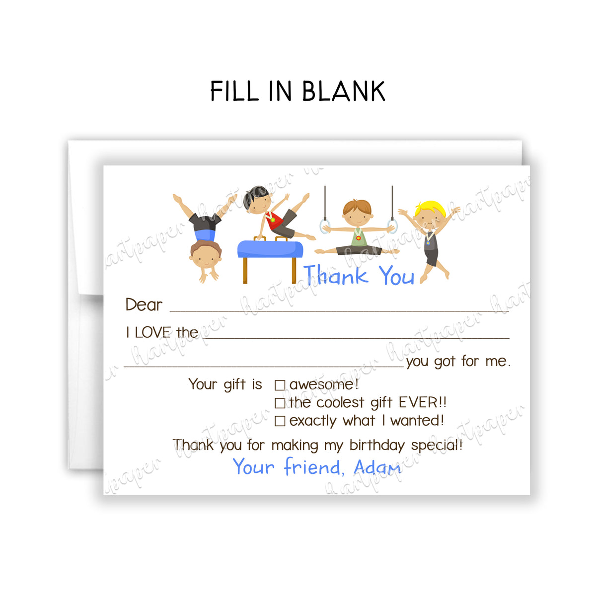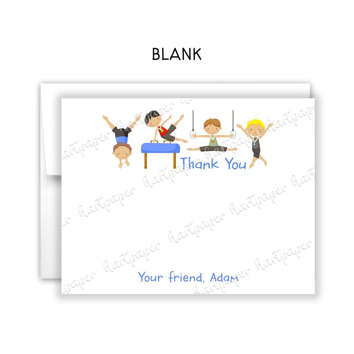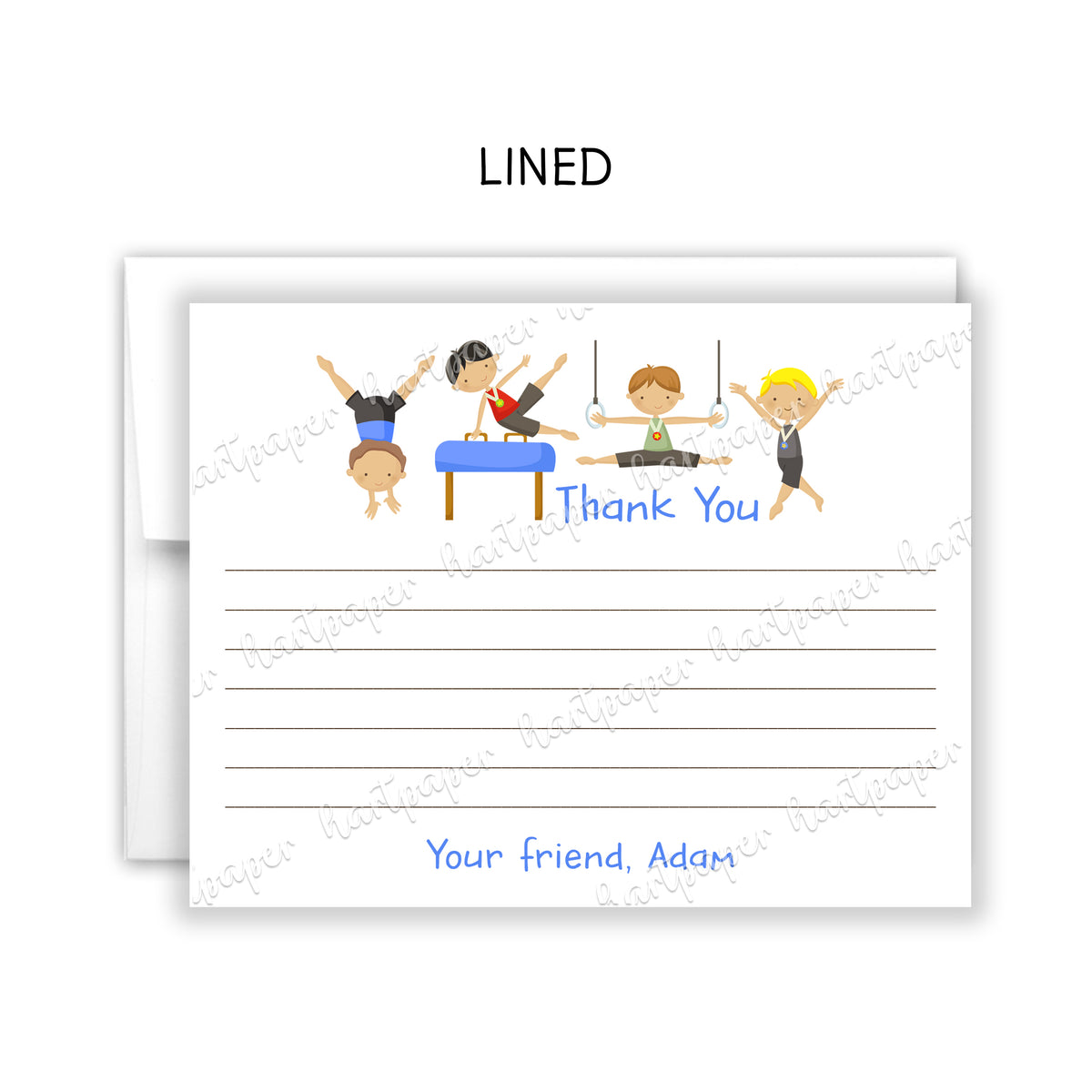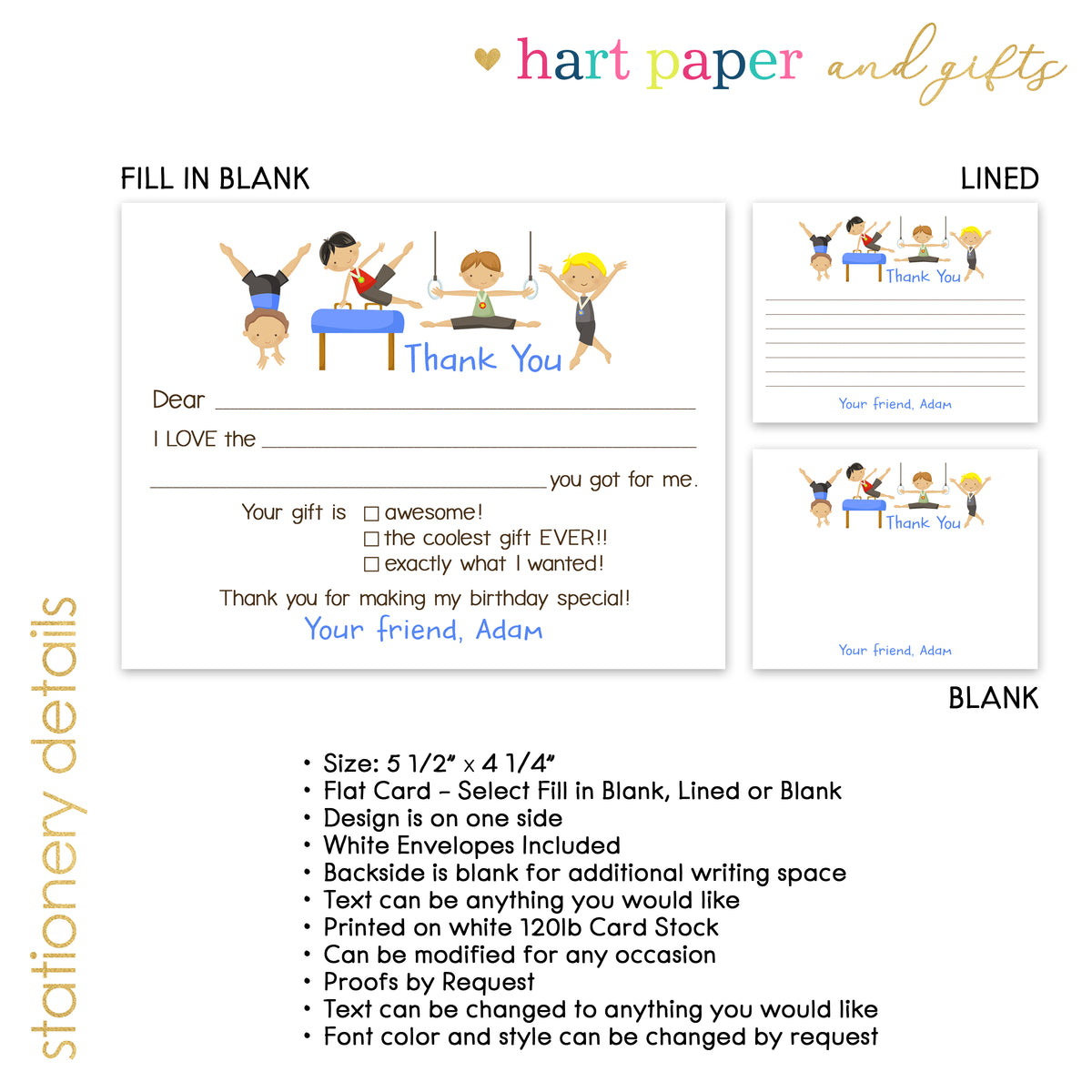 Gymnastics Thank You Note Card Personalized Custom Stationery • Fill in Blank, Lined or Blank Cards