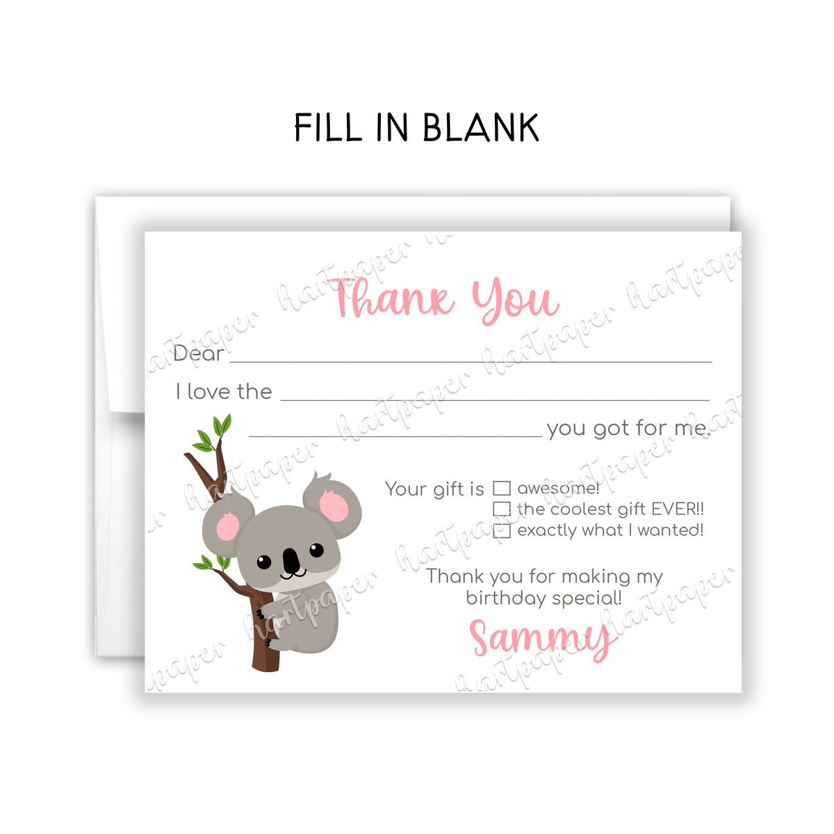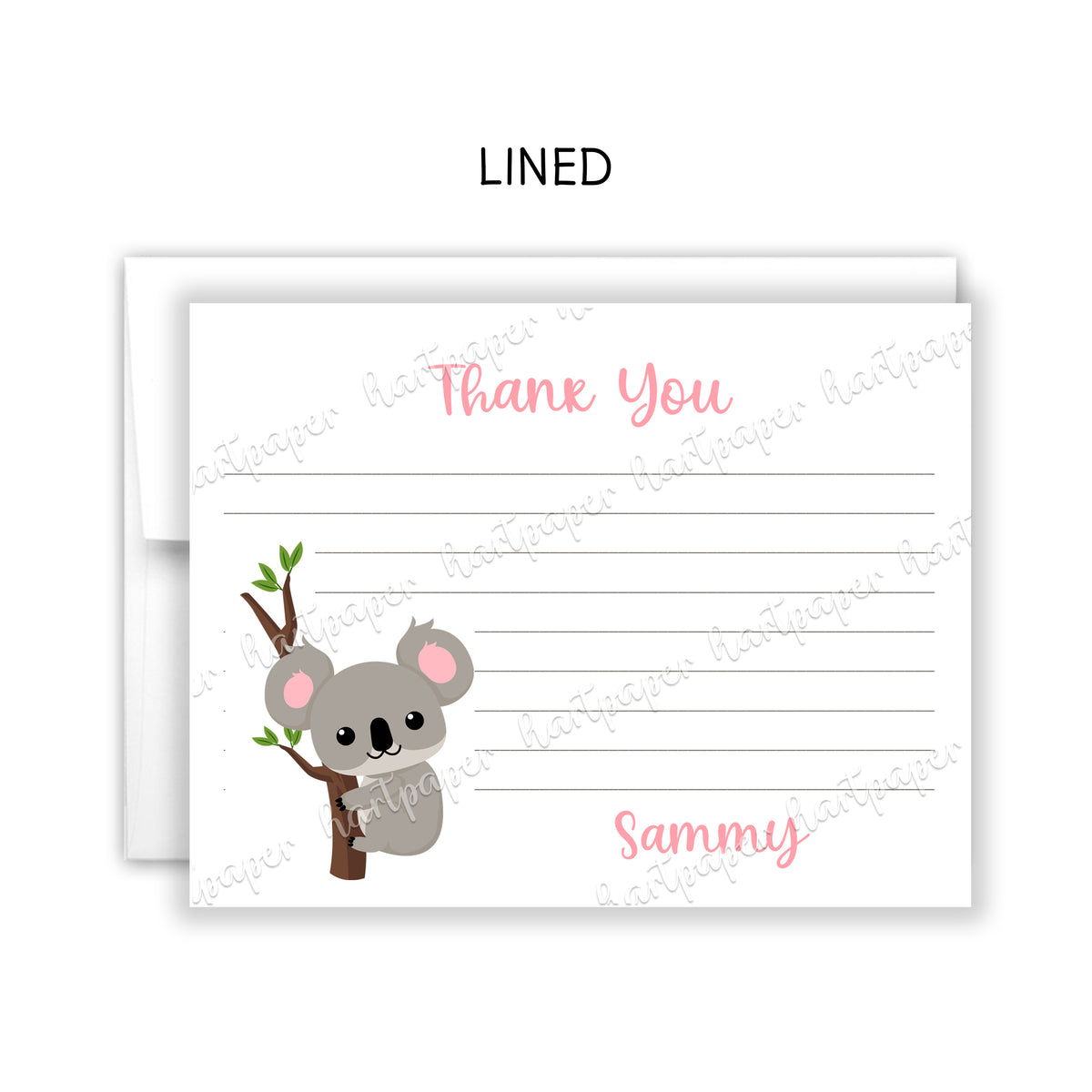 Koala Bears Thank You Note Card Personalized Custom Stationery • Fill in Blank, Lined or Blank Cards