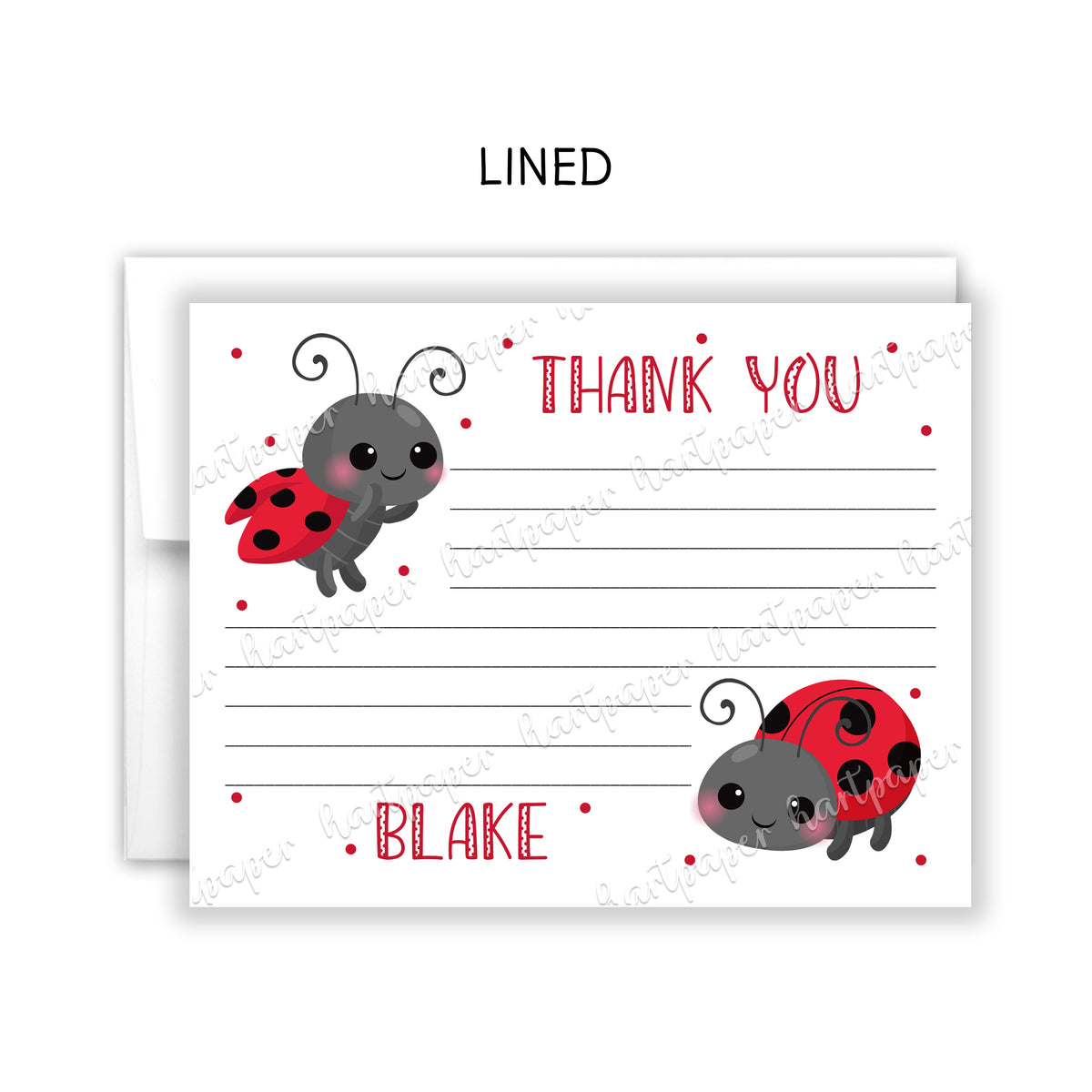 Ladybug Thank You Note Card Personalized Custom Stationery • Fill in Blank, Lined or Blank Cards